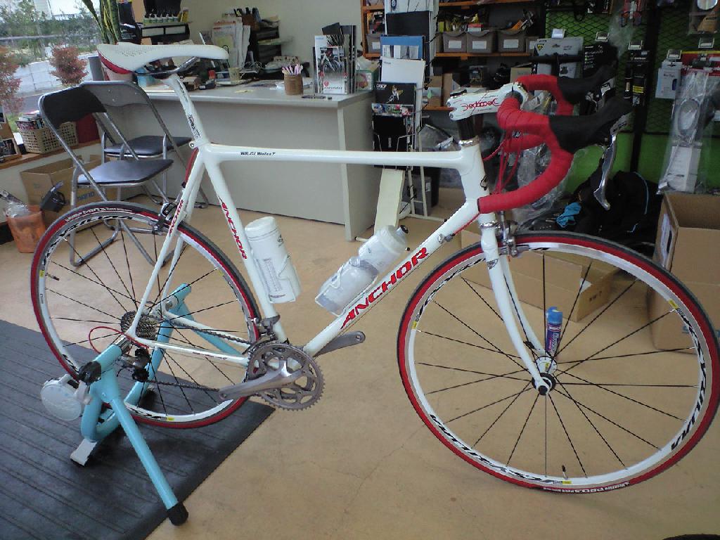 RNC7 オリジナルカラー・カスタムモデル スポーツバイク納車 2011.10.31 STさん購入のRNC7がついに納車となります。 ANCHORが世界に誇るクロモリバイク。 クロモリの最終形の一つであるネオコットが美しいですね。 またSTさんこだわりのホワイトパーツ、レッドパーツの組み合わせで更なる高みへ! さらにさらに、 トップチューブにはオリジナルネームをいれ完全なオンリーワンマシンとして産声をあげました。 さぁ! 走りにいきましょう! ピークスパイダーをきめちゃってください!(でもコケナイでくださいね)