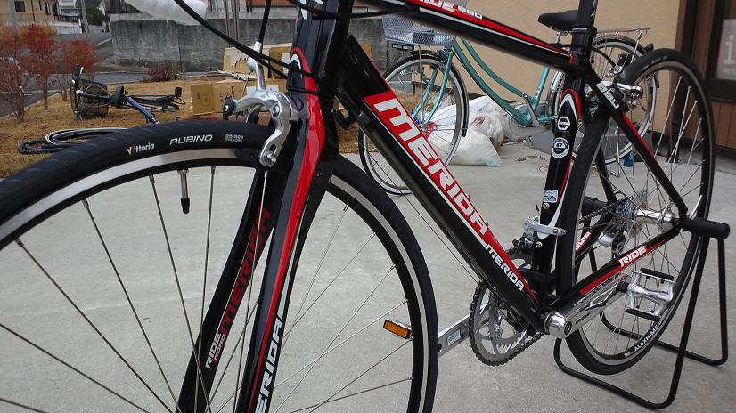 MERIDA 880 スポーツバイク納車 2011.12.11 K・Kさん購入のMERIDA RODE RIDE880(ブラック) これからロードを始めるとのこと^^ スポーツ自転車はとても楽しい時間をすごすことができますよ! フロントフォークがカーボン。 内側にもデザインが入ってるという丁寧なデザインが素晴らしいですね^^ いっしょにサイクリングして遊びましょうね!