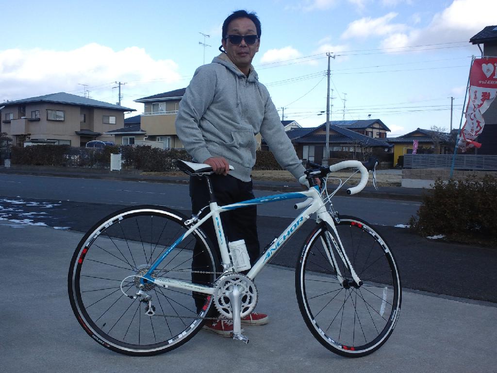ANCHOR RFA5 レーシングスカイ スポーツバイク納車 2012.02.18 江端様 購入のANCHOR RFA5 レーシングスカイ 初レーシングバイクとのことですが、 天明山をはじめ相馬の峠は制覇済みとのこと。 これから他県へ峠を求めた旅がはじまりますね^^ ワラガイサイクリングにもどうぞ!