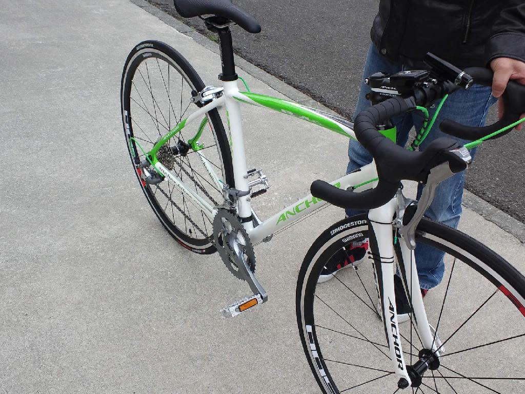 ANCHOR RFA5 レーシングライム スポーツバイク納車 2012.04.24 荒 様購入の ANCHOR RFA5 レーシングライムのカラーデザインがとても綺麗ですね! フロントフォークがフルカーボン+特徴的なフレームにより ロングライドなどでも疲れ知らず 一緒に週末サイクリングを楽しみましょうね