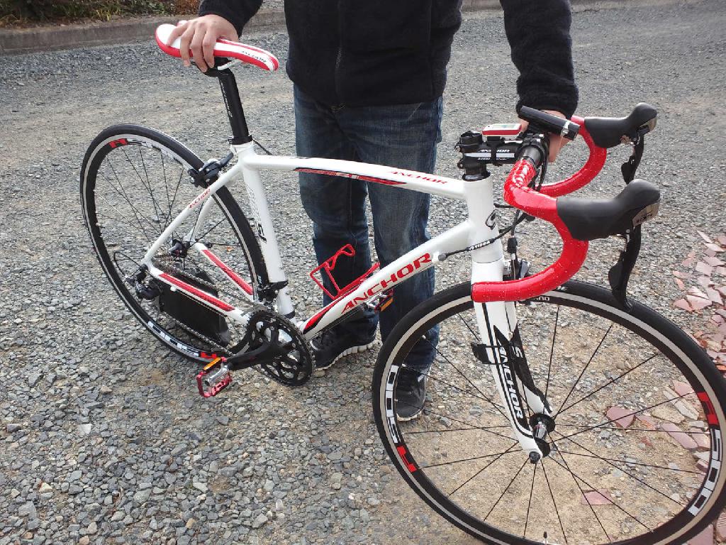 ANCHOR RFA5EPSE(限定モデル) スポーツバイク納車 2013.11.24 野澤様 購入の ANCHOR RFA5 EPSE 2014年度モデルのニューカラー。 さらに250台限定モデルであるレーシングカラーと高コストパフォーマンスの1台。 さらにさらに細かな部分にワラガイオリジナルのカスタマイズ。 初のロードバイクということで、 ヘッドチューブが長めのフレームで、ラグジュアリーなポジションに組上げ完成。 来春暖かくなったら、週末サイクリングに遊びに来てくださいね