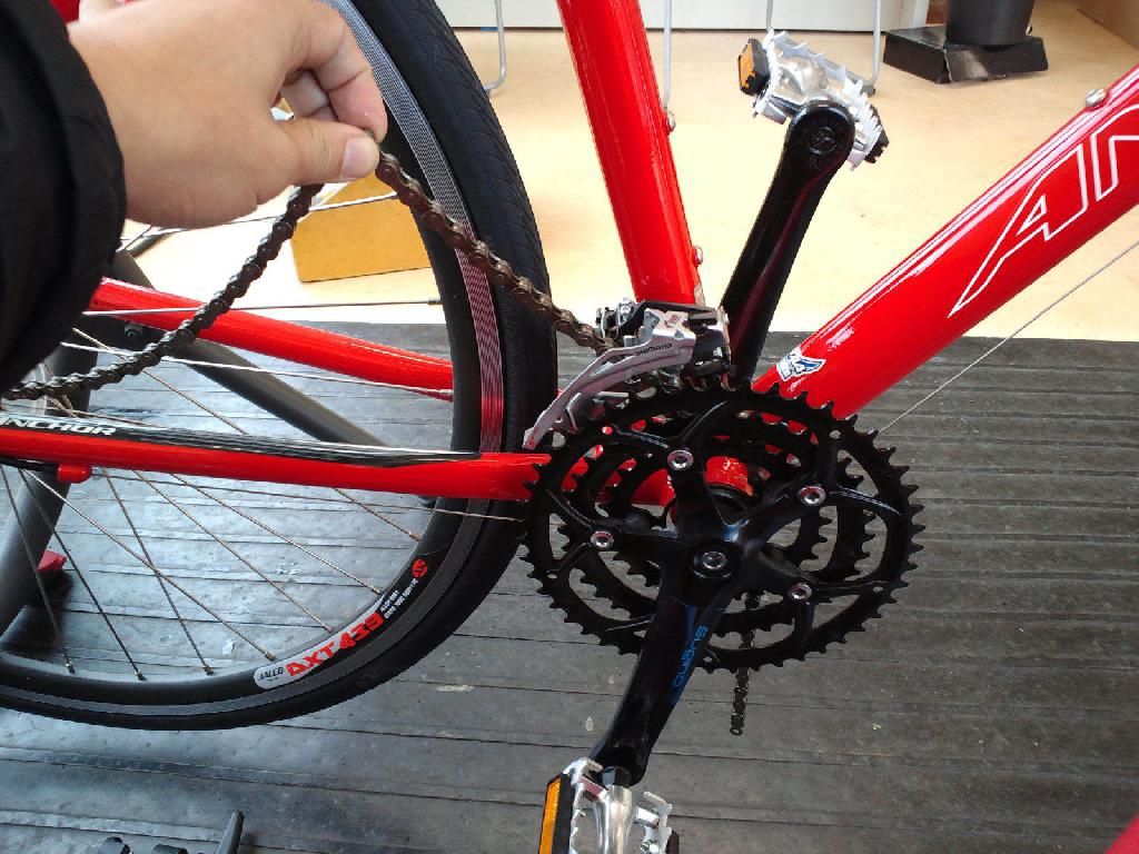 ANCHOR UF5 スポーツバイク納車 2014.01.14 遠藤様 購入のANCHOR UF5 真紅のフレームとエアロホイールが魅力的なクロスバイク。 さらに ドイツの超高性能オイル イノテック105の処理も実施。 チェーンを一度切って、完全に脱脂。 イノテック105に浸してリンク内部へ浸透するように微振動を与え続け、 今回はダルマストーブを使った乾燥作業。 100km以上のロングライドで使用実績もある車種ですので走行性能はばっちり ワラガイサイクリングにも是非遊びにきてください