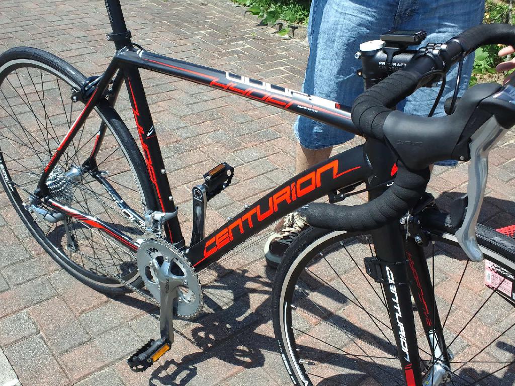 センチュリオン ハイパードライブ2000 スポーツバイク納車 2014.06.01 立谷様 購入のセンチュリオン ハイパードライブ2000 初めてのスポーツ自転車とのことで、 ロードバイクを選択いただきました。 スプロケットは12-32T という漢のロマンがつまった一台となります。 これさえあれば、 どんな峠でも上りきれることまちがいなし!! 週末サイクリングもお待ちしております