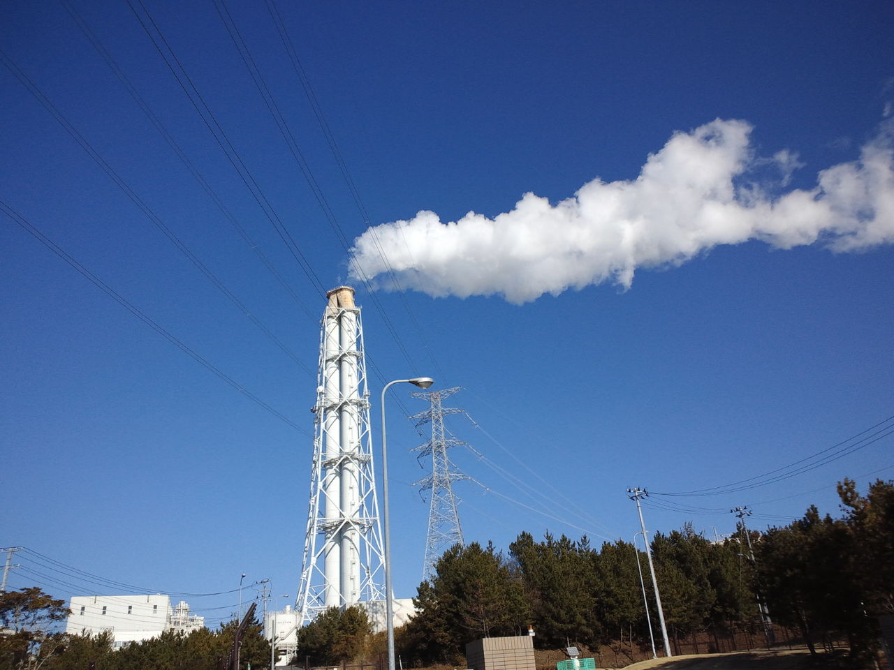 などと、サドルから腰を上げたりしながらも南相馬の火力発電所へ。