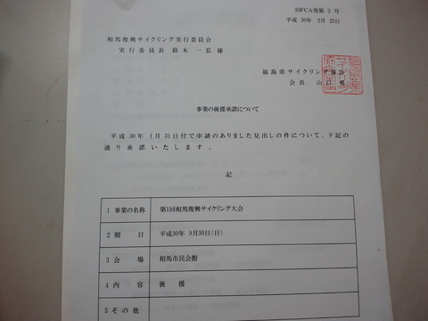 常磐自動車・相馬復興 後援依頼:福島県サイクリング協会