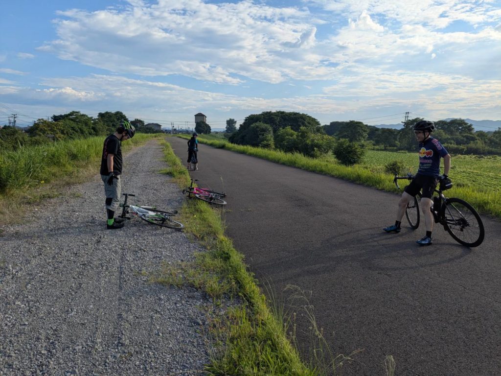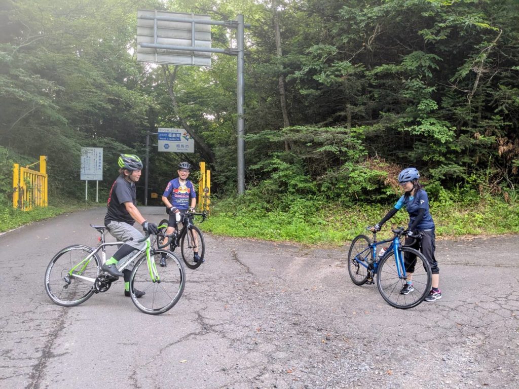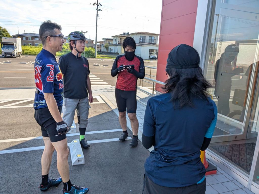 初心者サイクリングの日。菅野さん、岩崎さん、高橋さん、亮子ちゃんと出発。