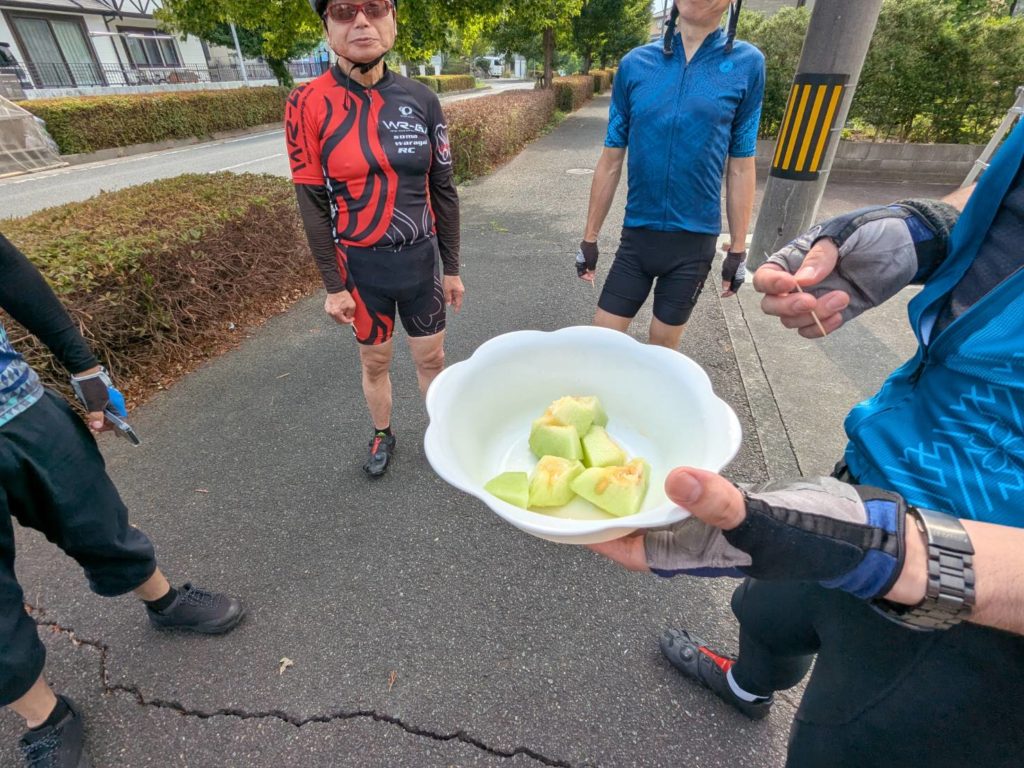ゴール後は、亮子ちゃん実家から頂いたメロンで今日のおめざタイム