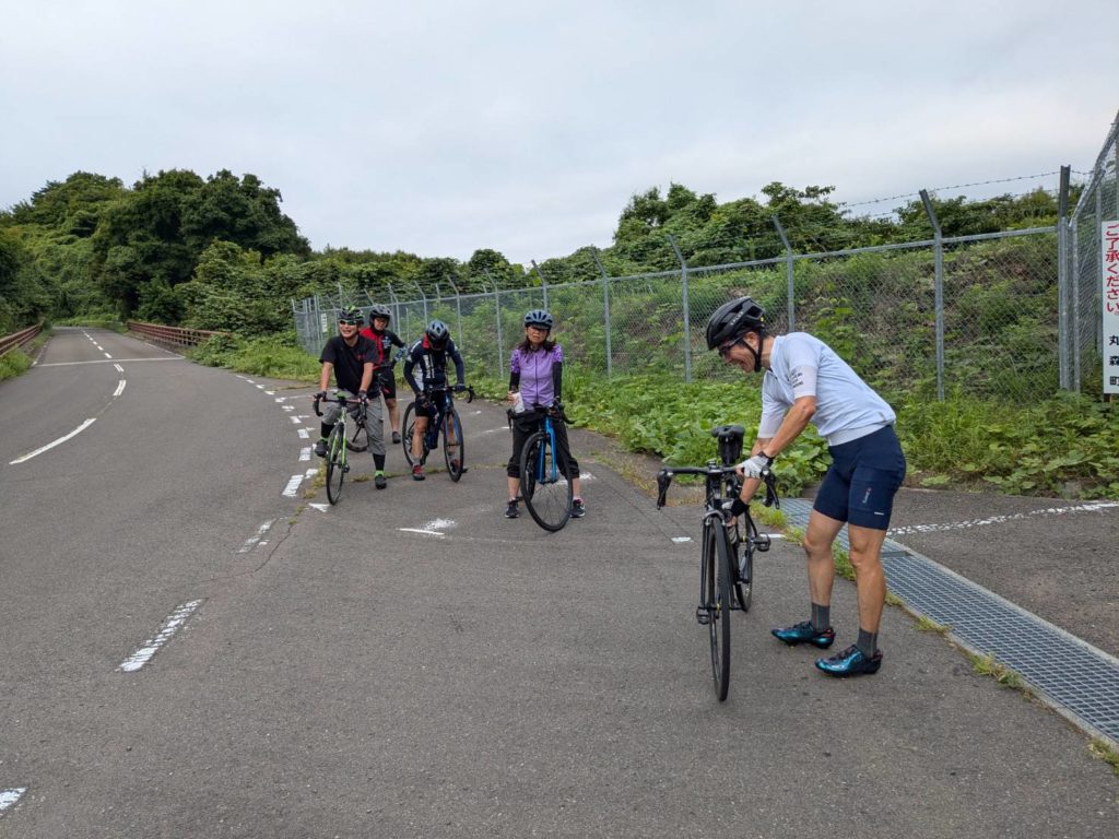 時速30km近くで追いかけても追いつけない。チラッと後ろをみた気がしたがダンシングまで始めちゃってる。違う人なのか?と思ったが旗巻峠入り口で待っててくれたので菊池さんで間違いない。