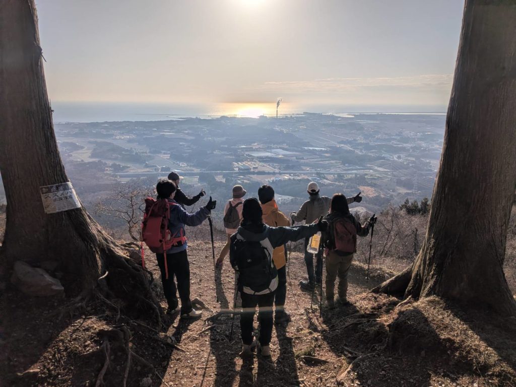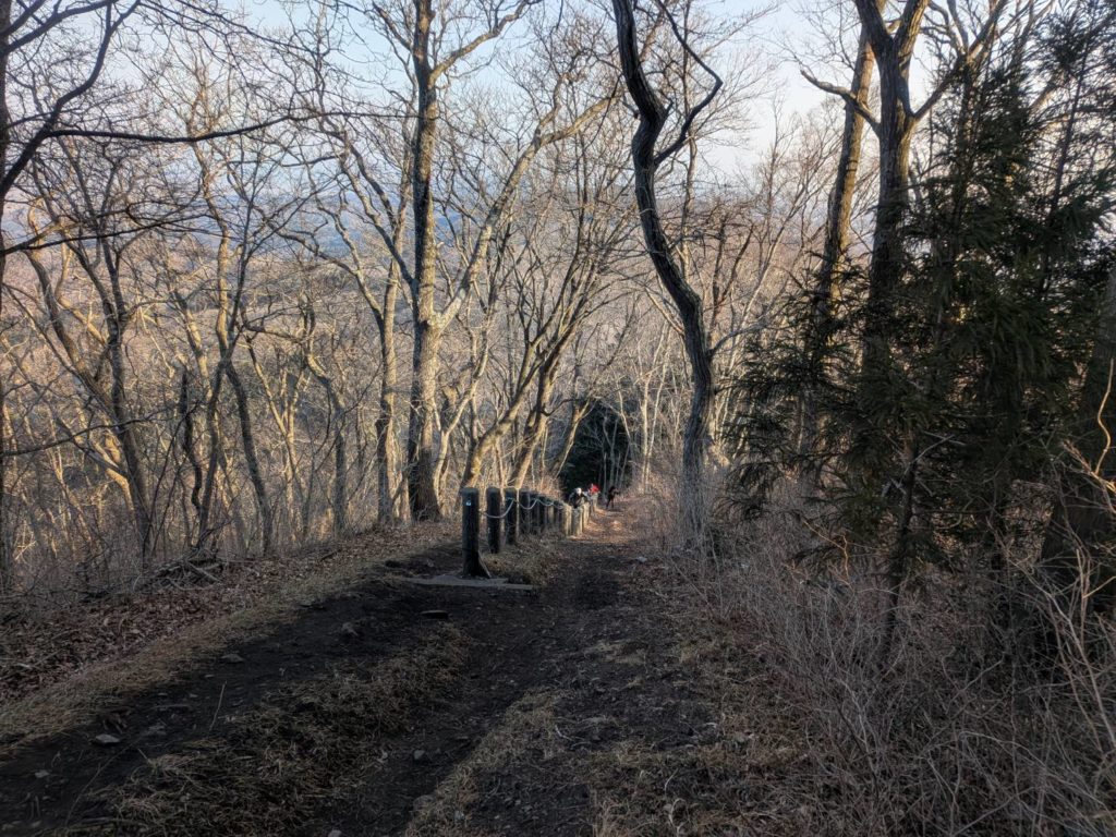 鹿狼山駐車場から歩いてバンビリンゴ園を通り抜け、鈴宇峠の頂上近くまで歩く。