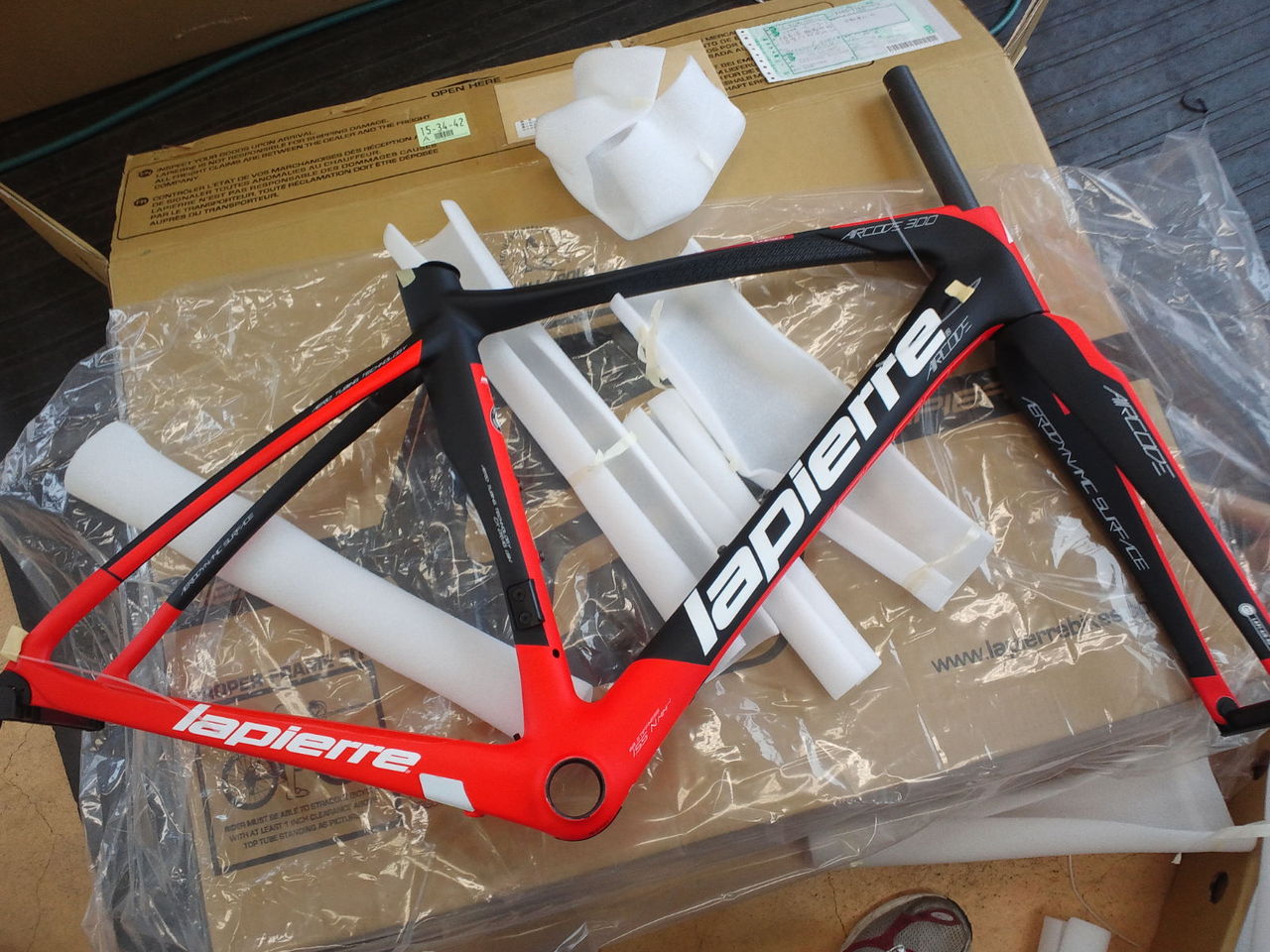 ラピエール AIRCODE300MCP フレームセット 製品情報 2015.02.20 鈴木様 購入のラピエール AIRCODE300MCP ついに到着!昨年のツールで活躍したFDJが駆るエアロロード。かっこいい!エアロロードかっこいい!このマット調のデザインがかっこいい! そしてハンドル、ピラーは3Tで組上げ 連絡いただき次第、組立作業に移ります^^