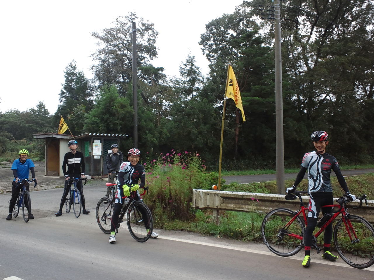 2015/9/27 サイクリング 週末早朝サイクリング 2015.09.27 昨日も雨で4ヶ月連続で中止となっている初心者サイクリングと変わって今日はなんとか曇り!雲の隙間からちらっと青空もいるからギリギリ晴れ! ママチャリレースも近づいてきたので一斉送信でサイクリングのお誘いメールを出すも、、、現れるのは猛者ばかり ということで、今日はいつものコース+平坦路を追加した63kmコース。 ママチャリレースでは引き足は使えないので出きるだけ踏み込むことに集中する。 30km巡航での高速サイクリングとなりました。疲れた~。太ももパンパンでのパンク修理が辛い