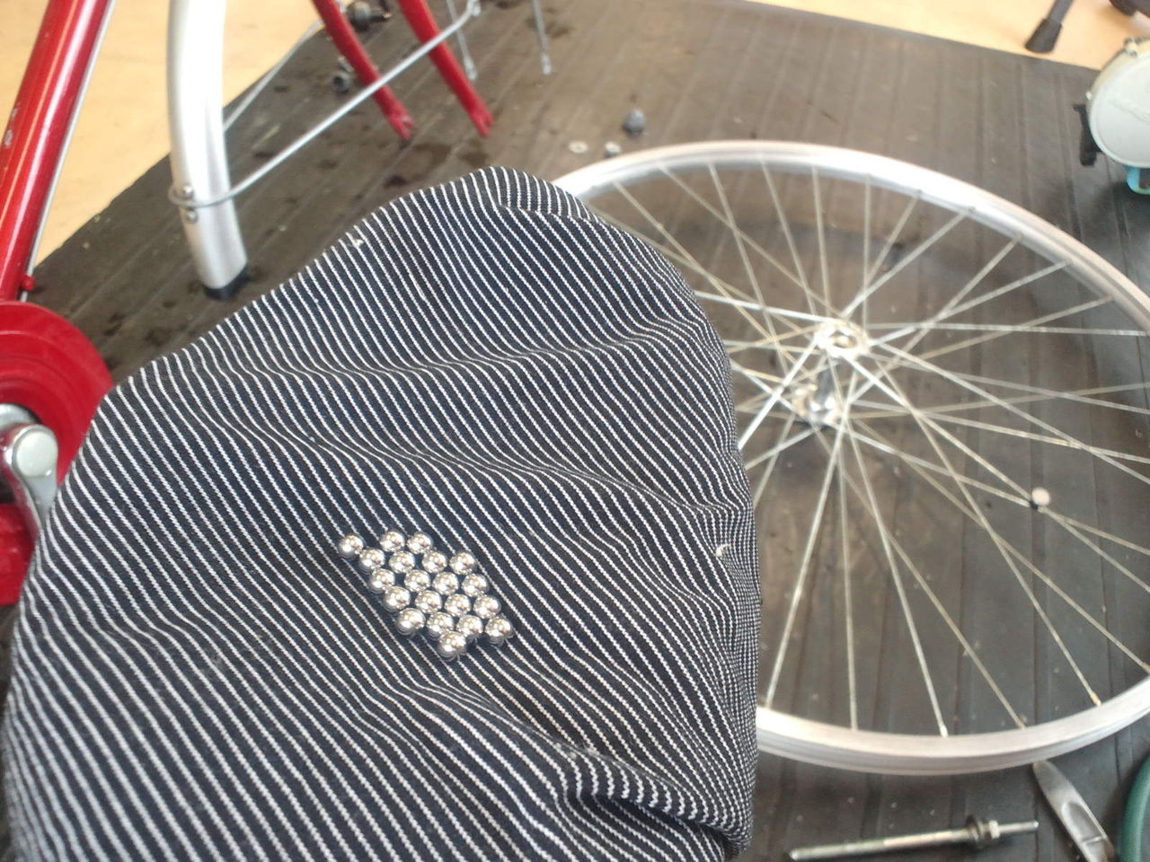 そしてフロントハブのザラ球チェックとグリス交換。