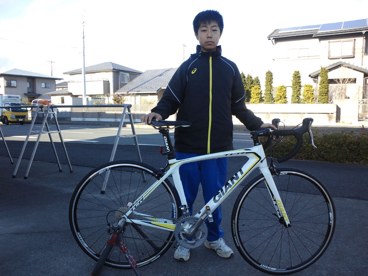 GIANT TCR COMPSITE3 スポーツバイク納車 2016.12.17 渡邊様 購入のGIANT TCR COMPSITE3 初めてのスポーツバイクとしてロードレーサーのTCRを選択いただきました。 私より身長が低いのに股下が2cm以上も長い!という羨ましい体型。まだ中学1年生ということは今からガンガン練習すればロードバイクの潜在能力を開放するだけの力が備わります。まずはロードバイクに慣れて自由自在に乗りこなしてください^^そして来春からお父さんと一緒にワラガイサイクリングへもどうぞ!