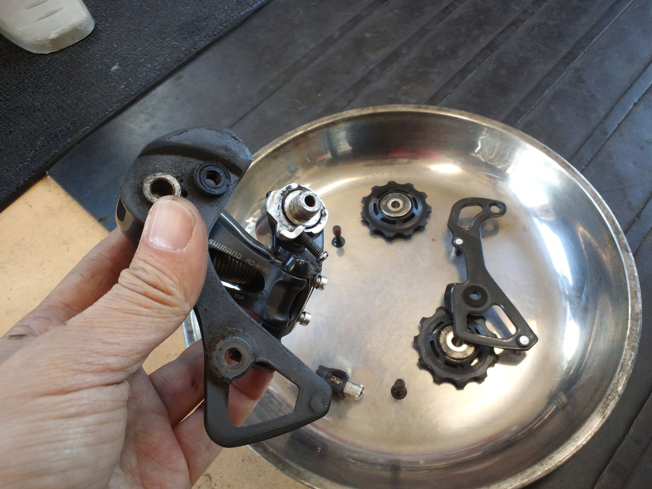 リアディレイラーもプーリーのジャリジャリ感がすごいので綺麗に。