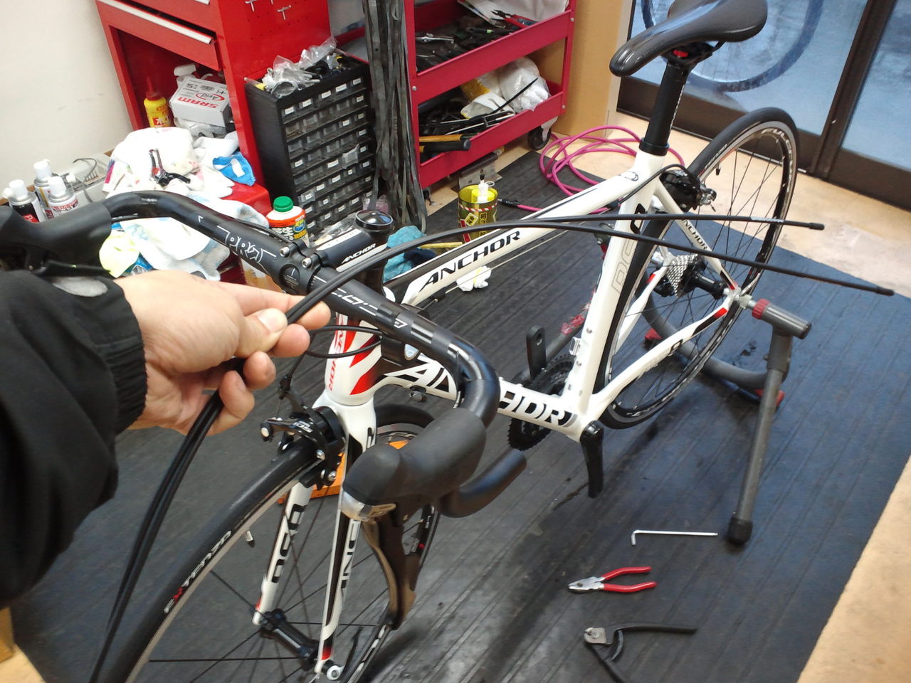ANCHORはシフトワイヤー、ブレーキワイヤーも組まれて来ず長いまま。