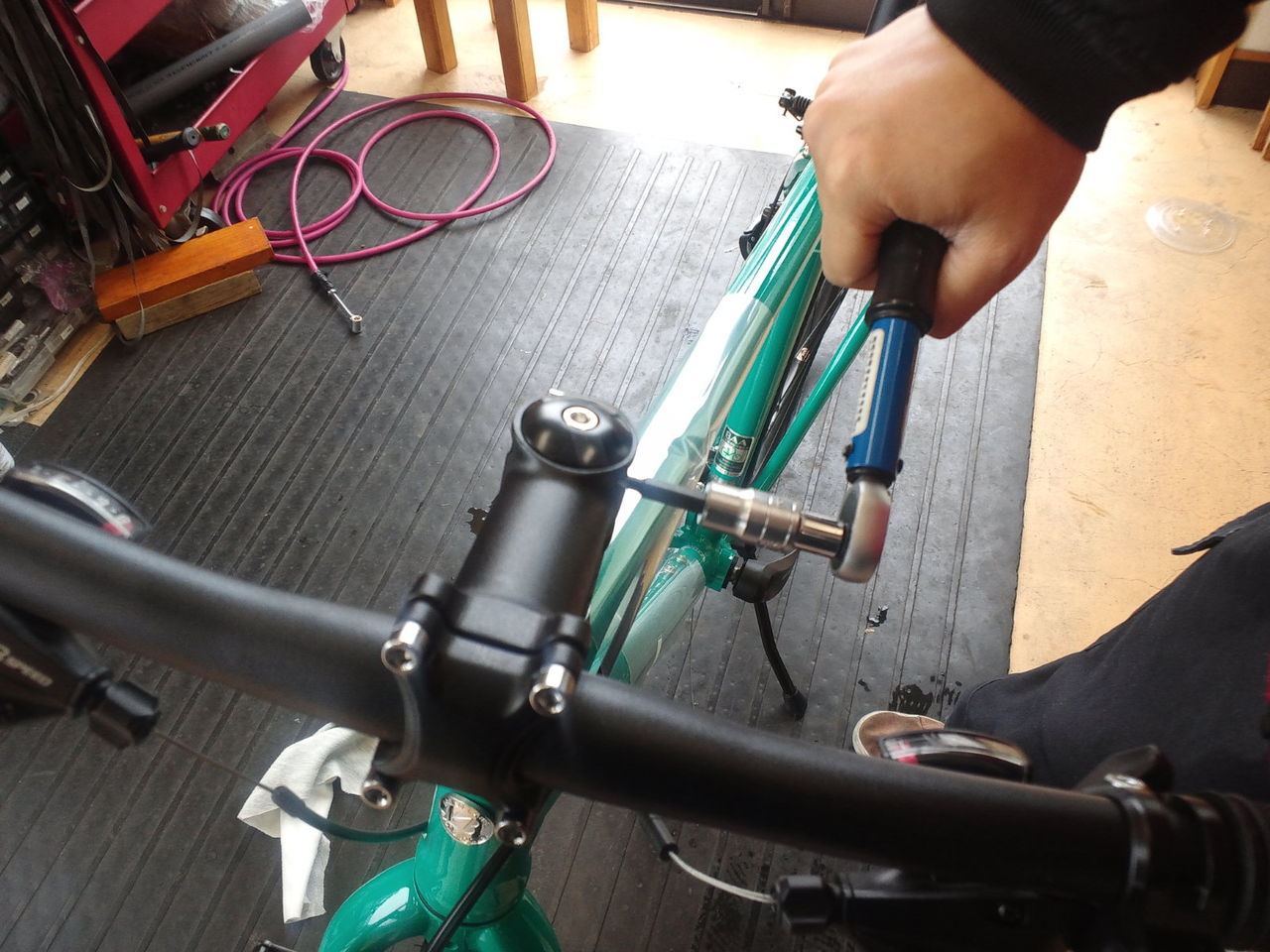 ブリヂストン シルヴァF24 グリーン スポーツバイク納車 2017.05.17 高橋様 購入のブリヂストン シルヴァF24 初めてのスポーツ自転車ということでクロスバイクを選択いただきました。 紫外線で劣化してすぐに邪魔になるスポークプロテクターは外す。 ディレイラーハンガーのチェック 締め付ける箇所は全てトルクレンチにて実施。 無料サービスでチェーンフォールプロテクターを装着。 スポーツ自転車に慣れてきたら、お父さんと一緒に週末サイクリングに来てはいかがでしょうか^^(中学生なので写真は控えましたが大丈夫なら店に遊びに来た際に撮影させてください)