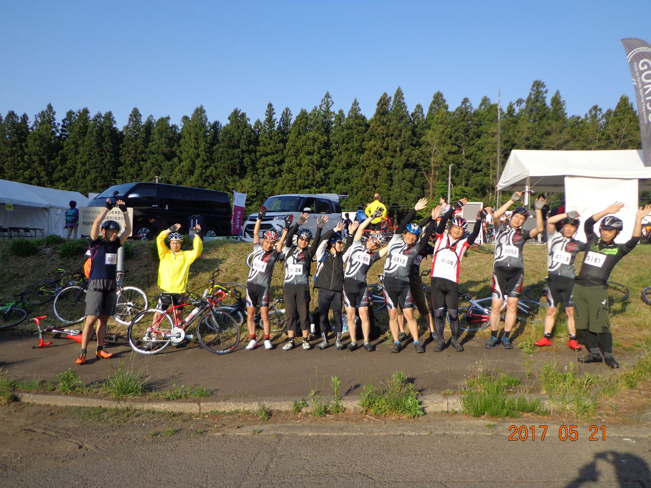 予定より早い出発であるが全員がソワソワし始めているのでゼッケンを取り付け大会会場に向う。