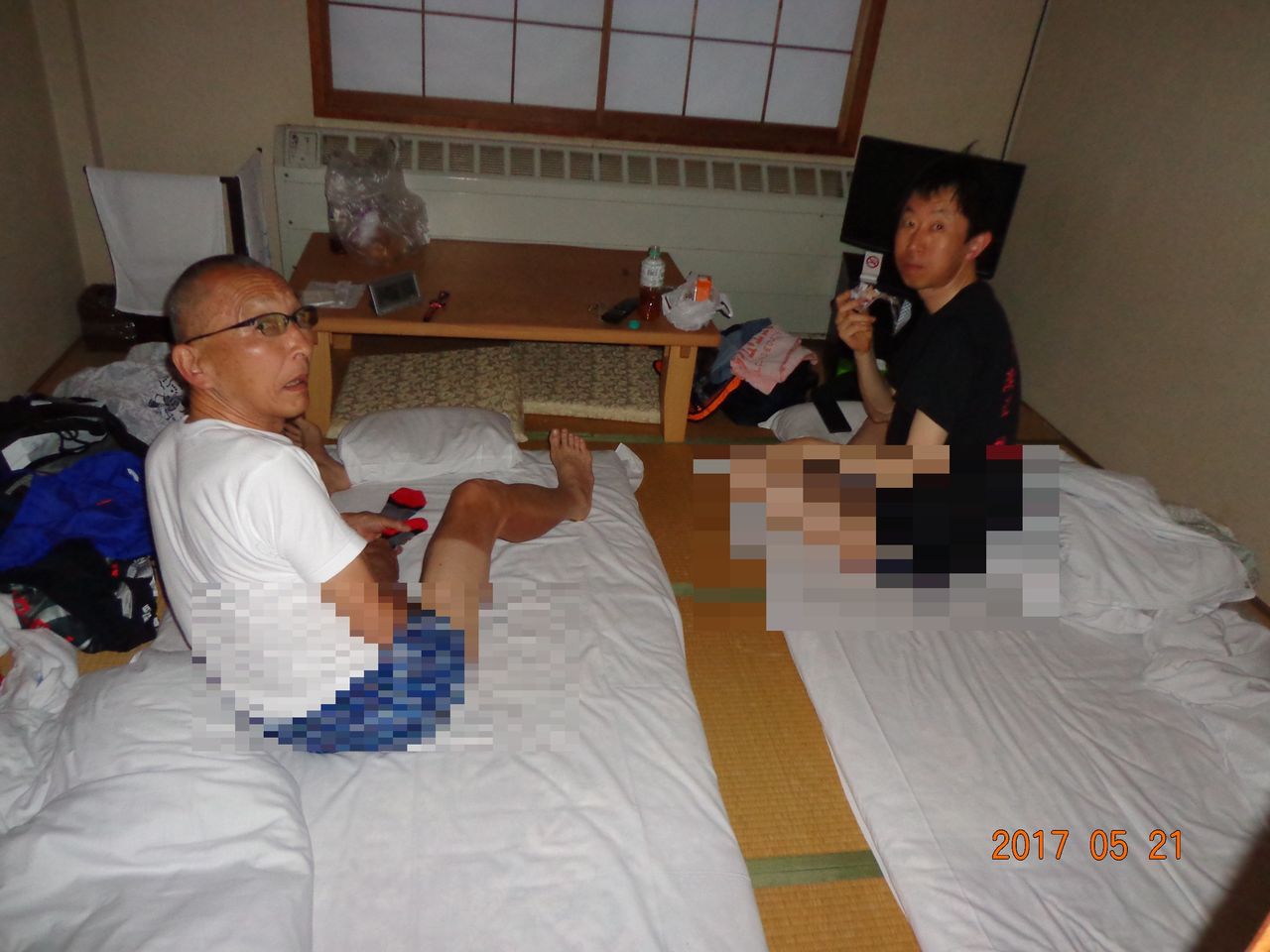 布団に入り数秒で寝息を立てる飯土井さん、溜息なのか寝息なのかわからないのを発する小野さん。