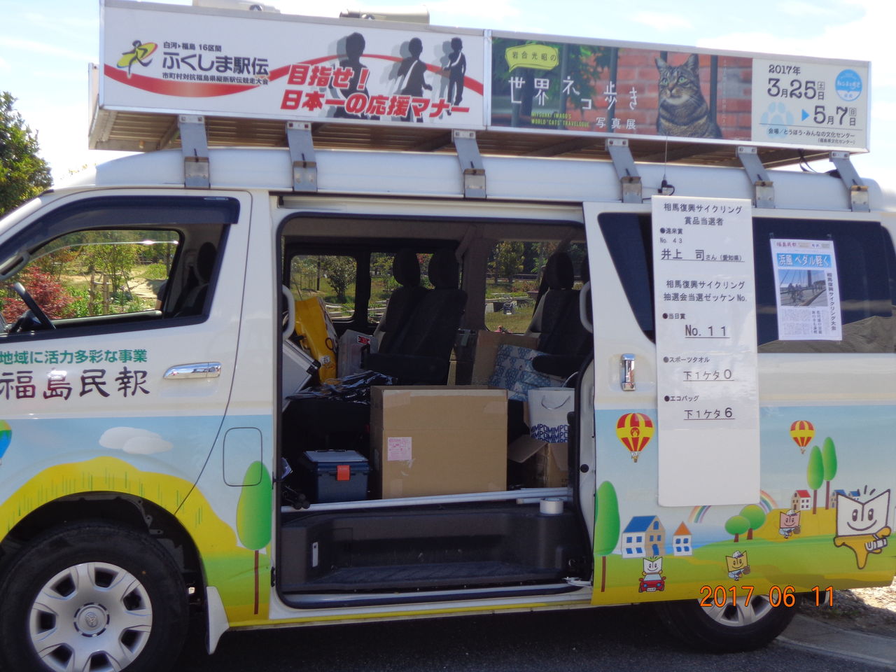 参加者にアンケートを書いてもらい、完走証、相馬市のPR冊子、福島民報様からの御土産などを配り、