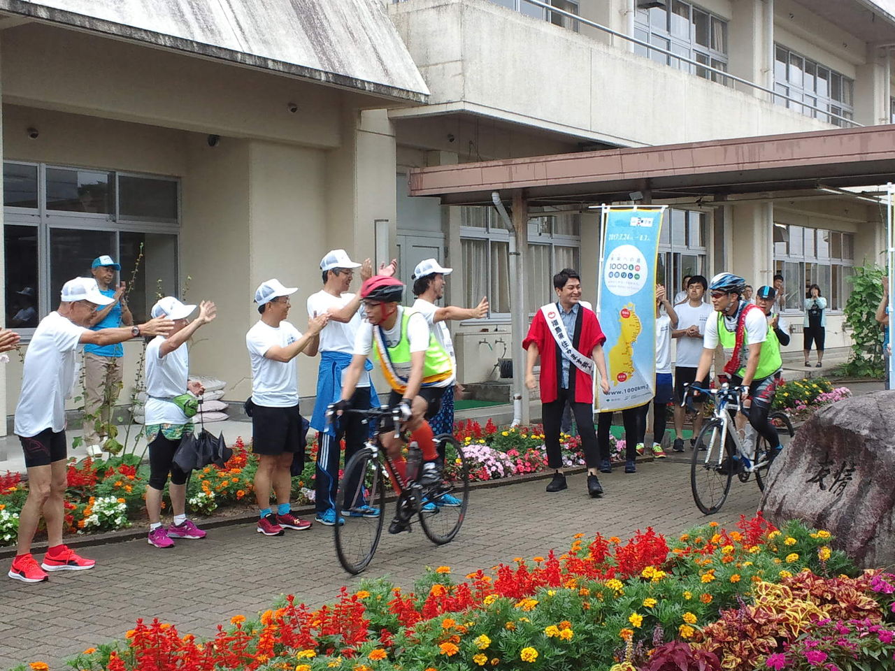 1000km縦断リレー(2017年 山上~霊山区間) 常磐自動車・相馬復興 2017.08.01 今年もこの季節となりました。青森から東京までRUNと自転車で襷をつなぐ1000km縦断リレー。東京都主催で2020年東京オリンピックの聖火リレーの練習も兼ねてるとか兼ねてないとかのやつです。 相馬市サイクリング協会では千尋さんと荒さんの2名が山上小学校~霊山パーキングまでの区間を担当となりました。 若干の小雨ではありますが、この両名であれば雨をかわして走ることなんて朝飯前なので安心です。 この襷のどれかに日向涼子さんの汗が沁みこんだ1本があるはず、興奮しないで平常心で走行してください サイクリングランキングへ