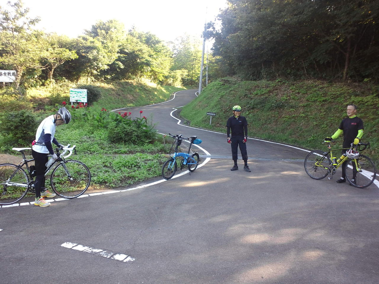 小斎峠の途中から、ワラガイ四天王の杉目さんの後ろにぴったりと着いて行く1台の折りたたみ自転車が!
