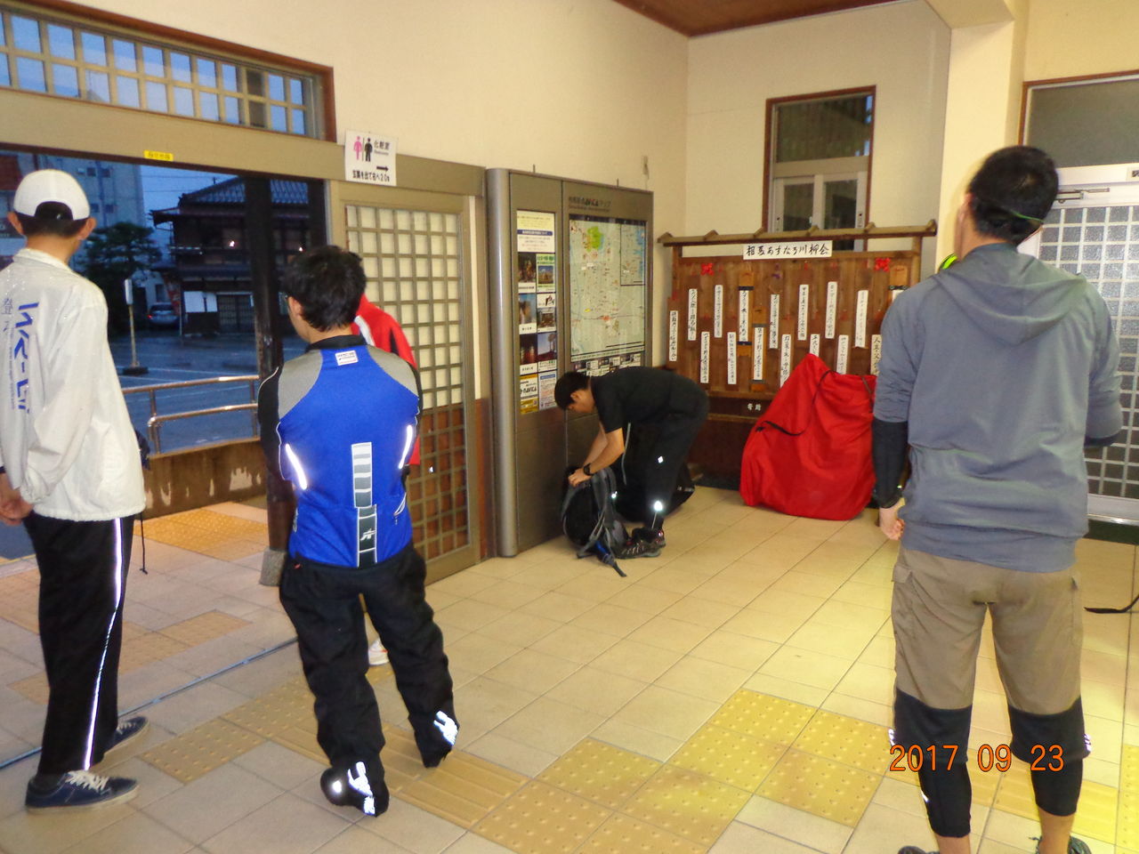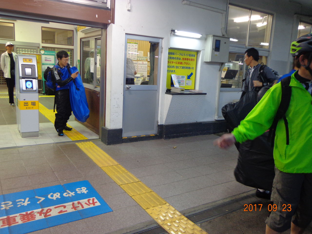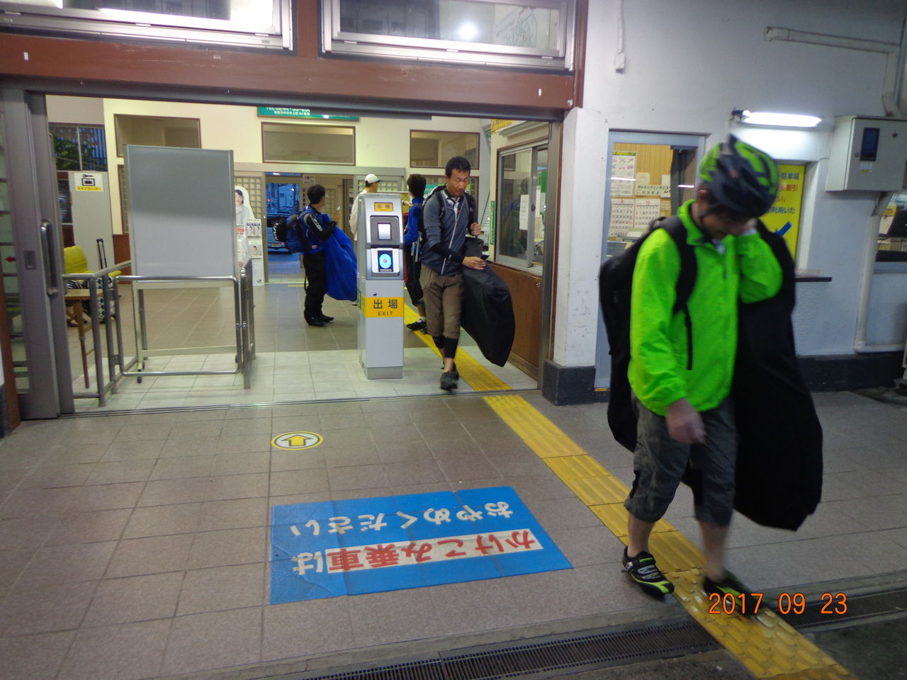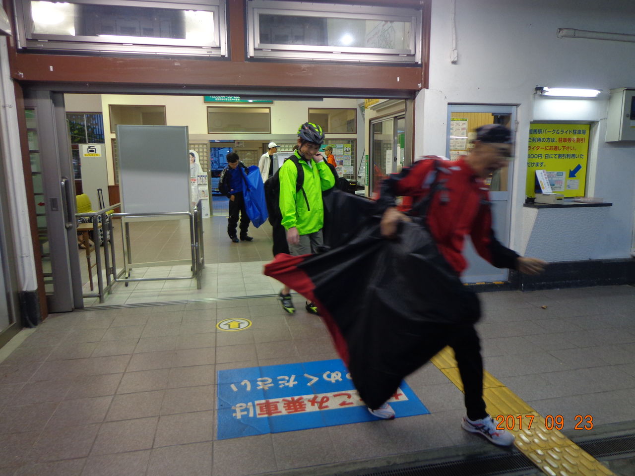 始発となる相馬駅には人は少なく端の方で輪行準備を始める面々。