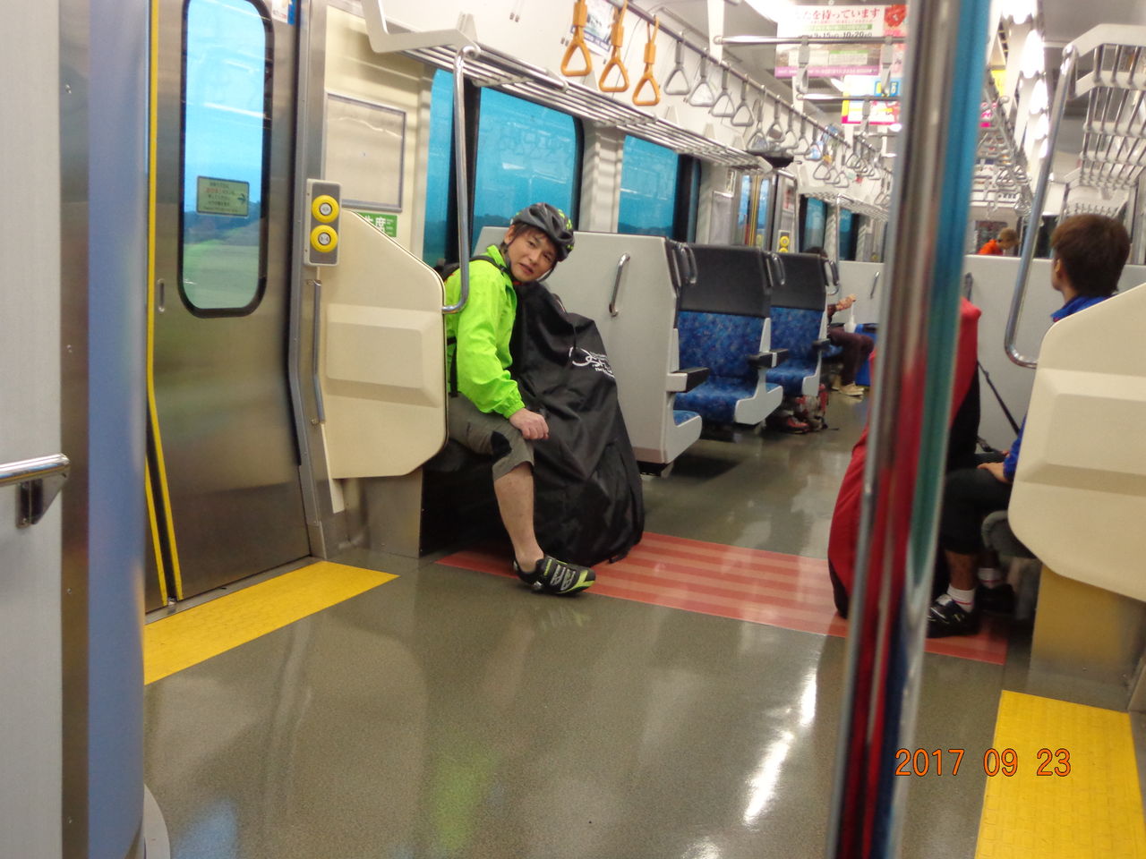 山手線のような混雑具合だったら輪行袋の中の自転車は無事なわけがない。