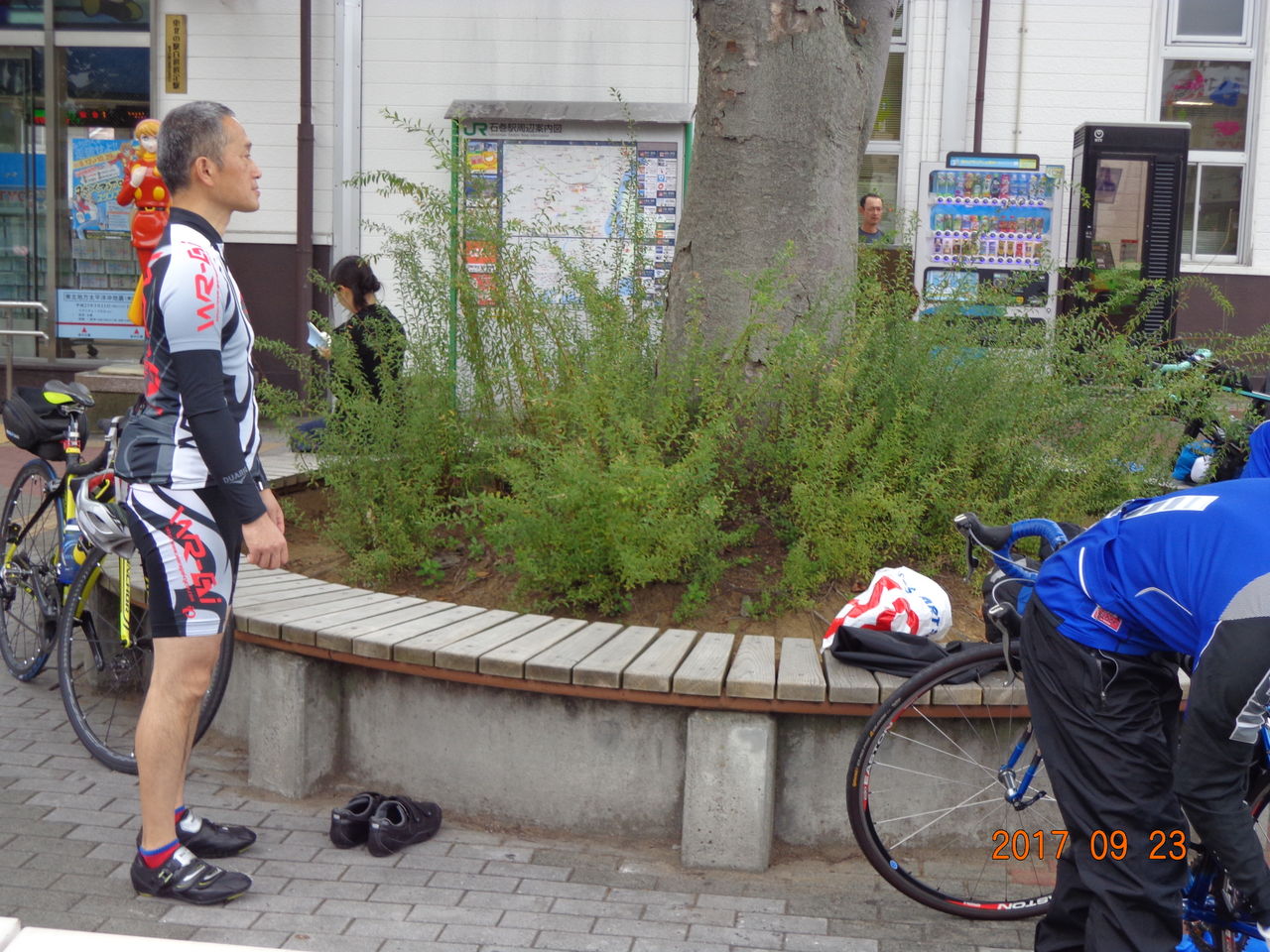 早速駅前の邪魔にならないところでロードバイクを組上げる。