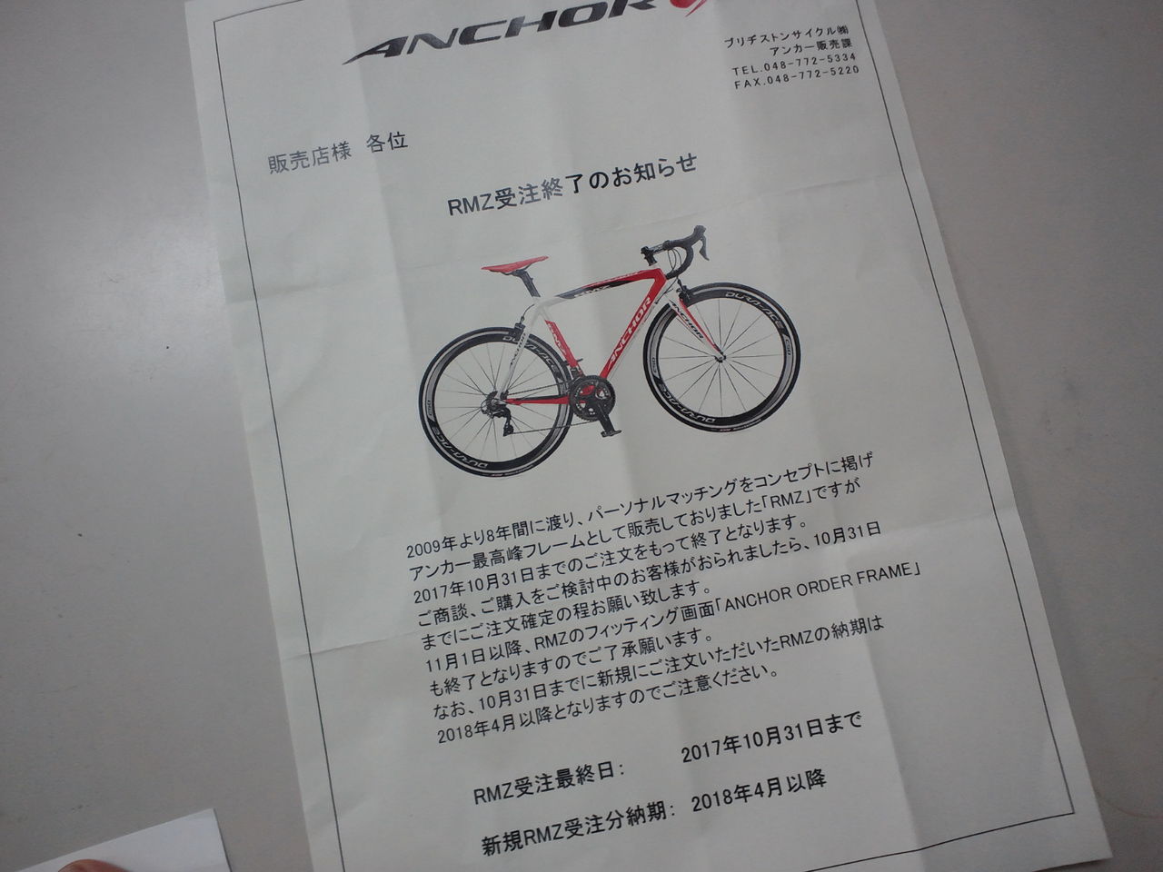 ANCHORはRMZが終了したとしても、高級ロードバイクブランドとして当店一押しで勧めていこうと思っております