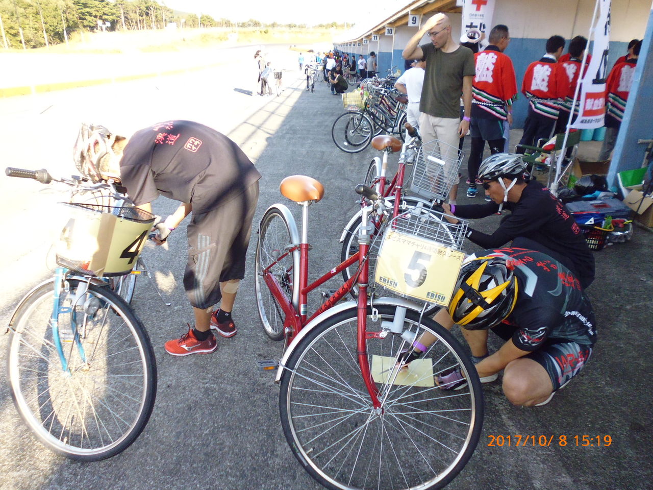 エビスではママチャリ耐久レース本選前に150mの早乗りレースというのがあるが、本選前に怪我してられないので適当に済ますよう指示をだし、いよいよ2017年エビスママチャリ耐久レース第3戦がスタートとなるのだ。