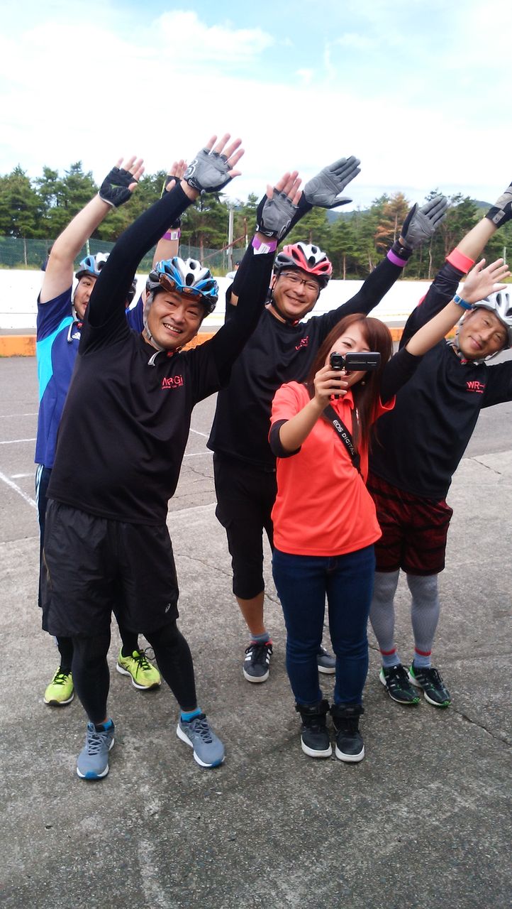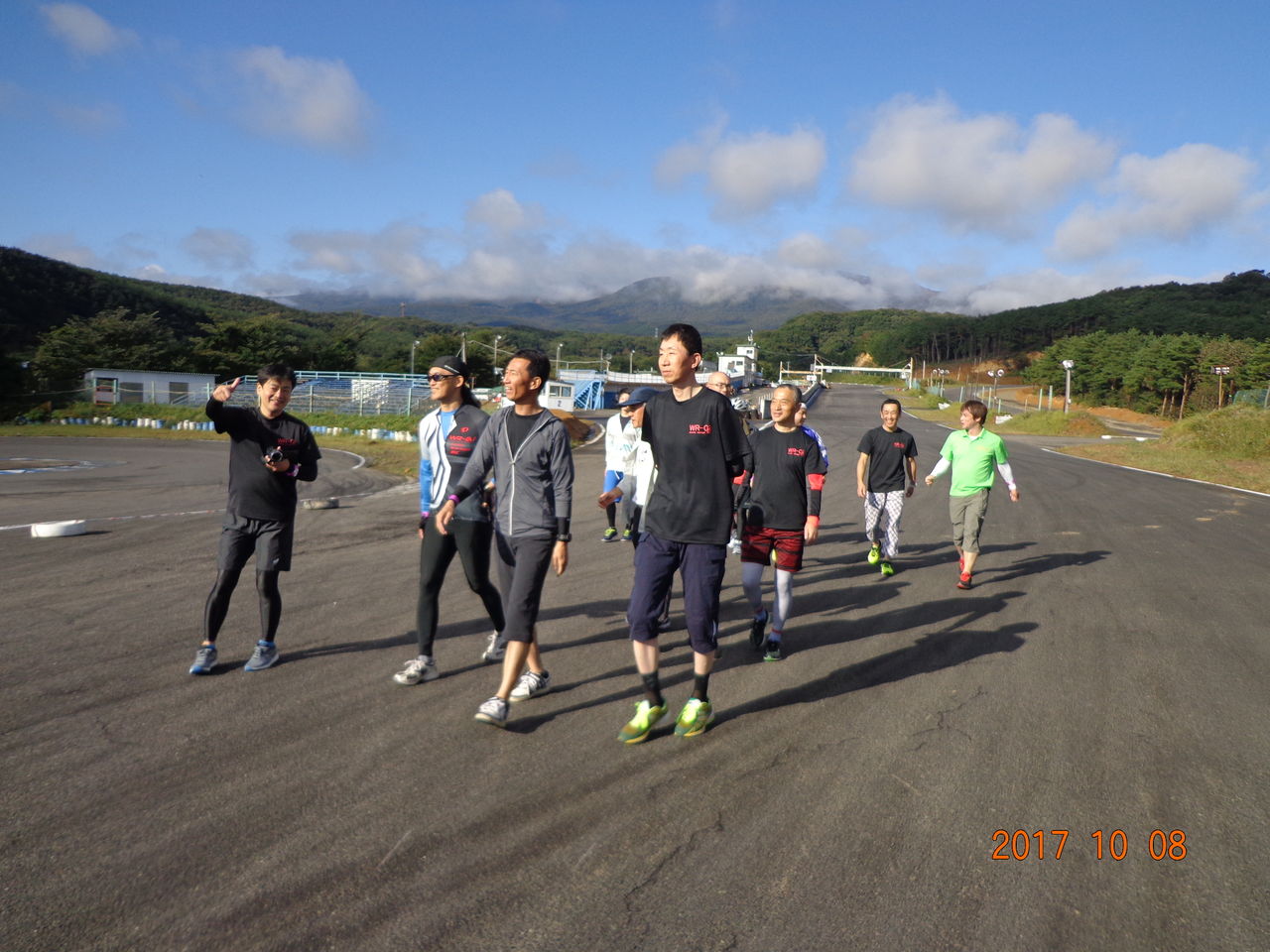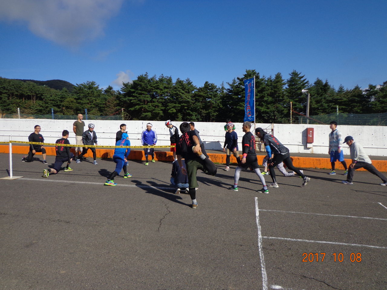 レース前の準備体操は小野さんの号令にて行なう。