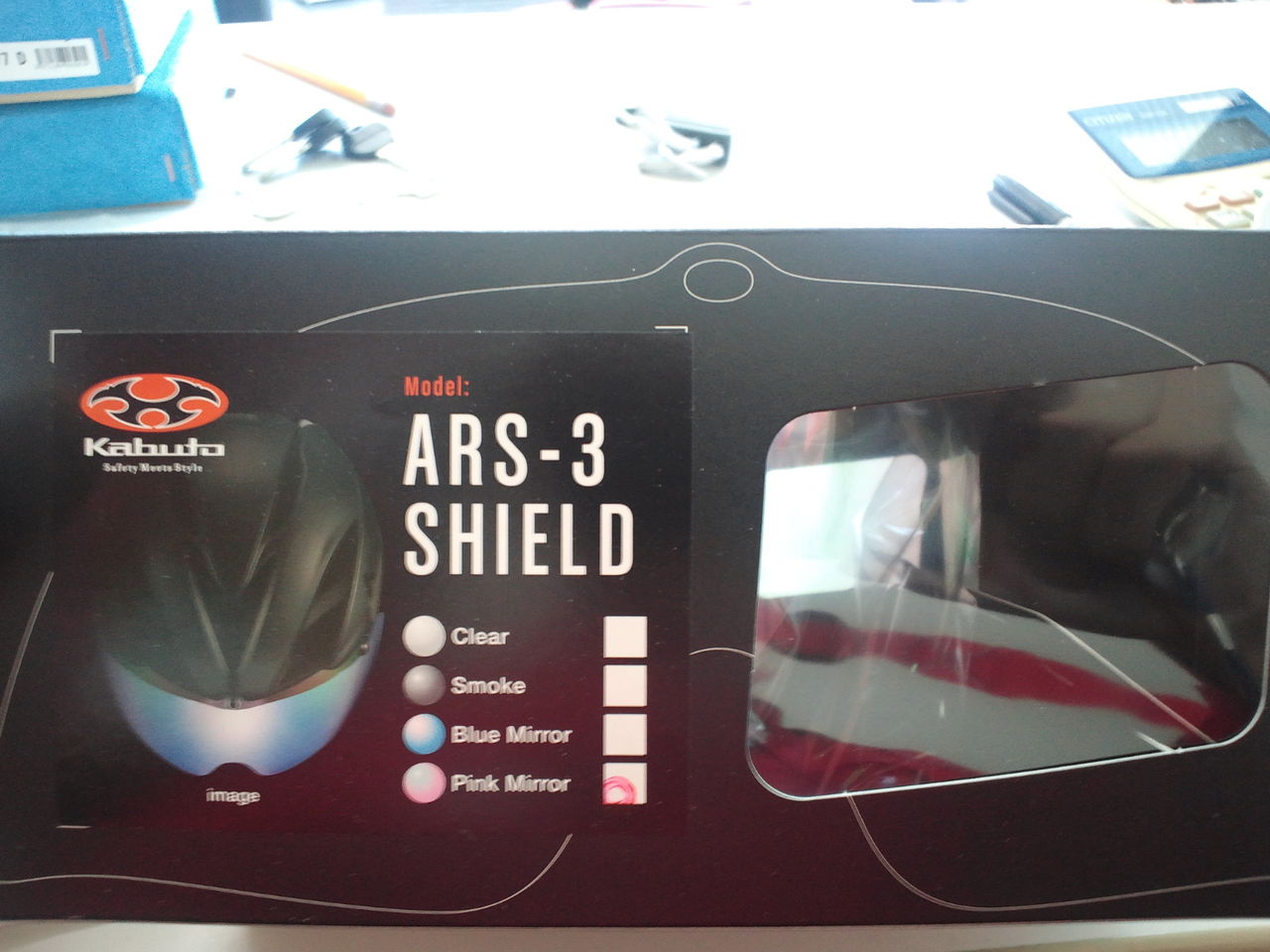 AERO-R1用シールド(ピンクミラー) 製品情報 2017.10.24 飯土井様にご注文いただいたAERO-R1用シールドが到着いたしました。 袋から出してないのでハッキリと写りませんでしたが、ピンクミラータイプ 標準装備のシールドに比べて薄く軽く柔軟性が高く仕上がってます。 私はメガネを使用してるのでアイウェアを面倒に感じていたのですが、このヘルメットであれば不自由なくアイウェアもいけますね!!次のヘルメットはAERO-R1にしようかっな~