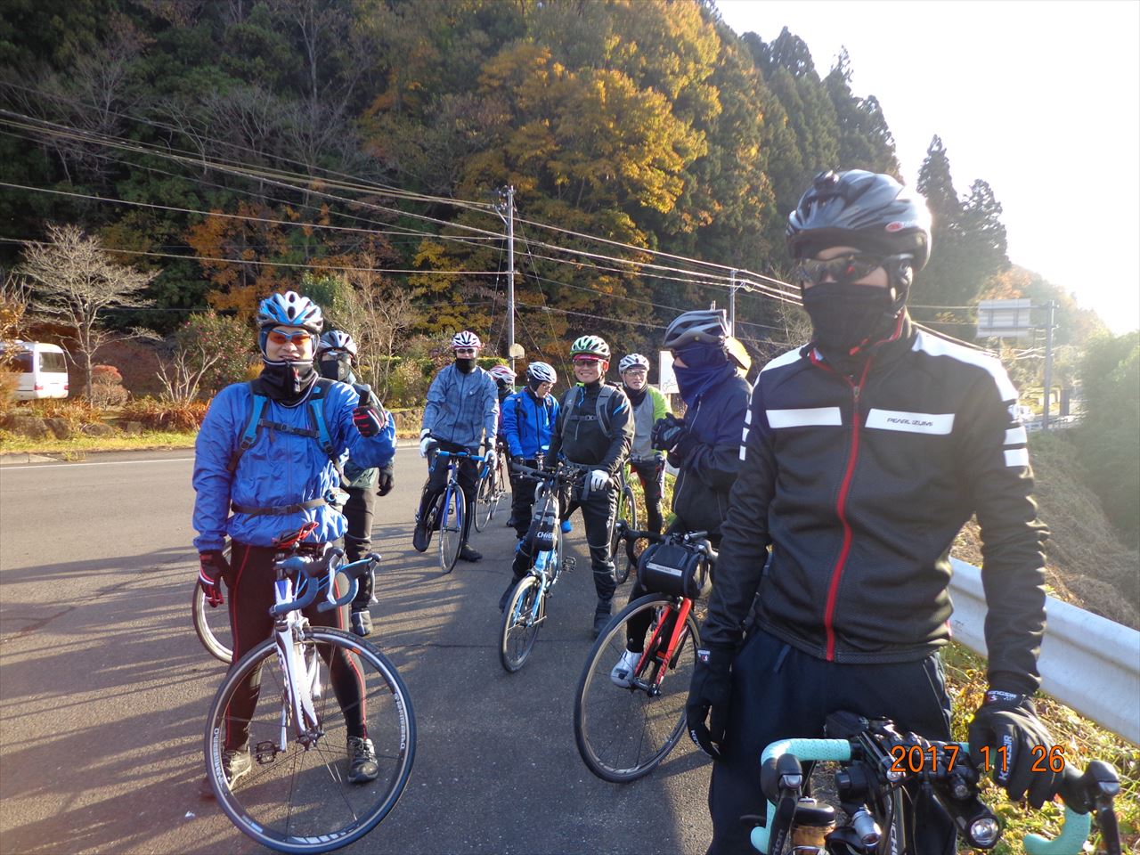 鹿狼山市場で全員集合を果たしたワラガイRC御一行様。