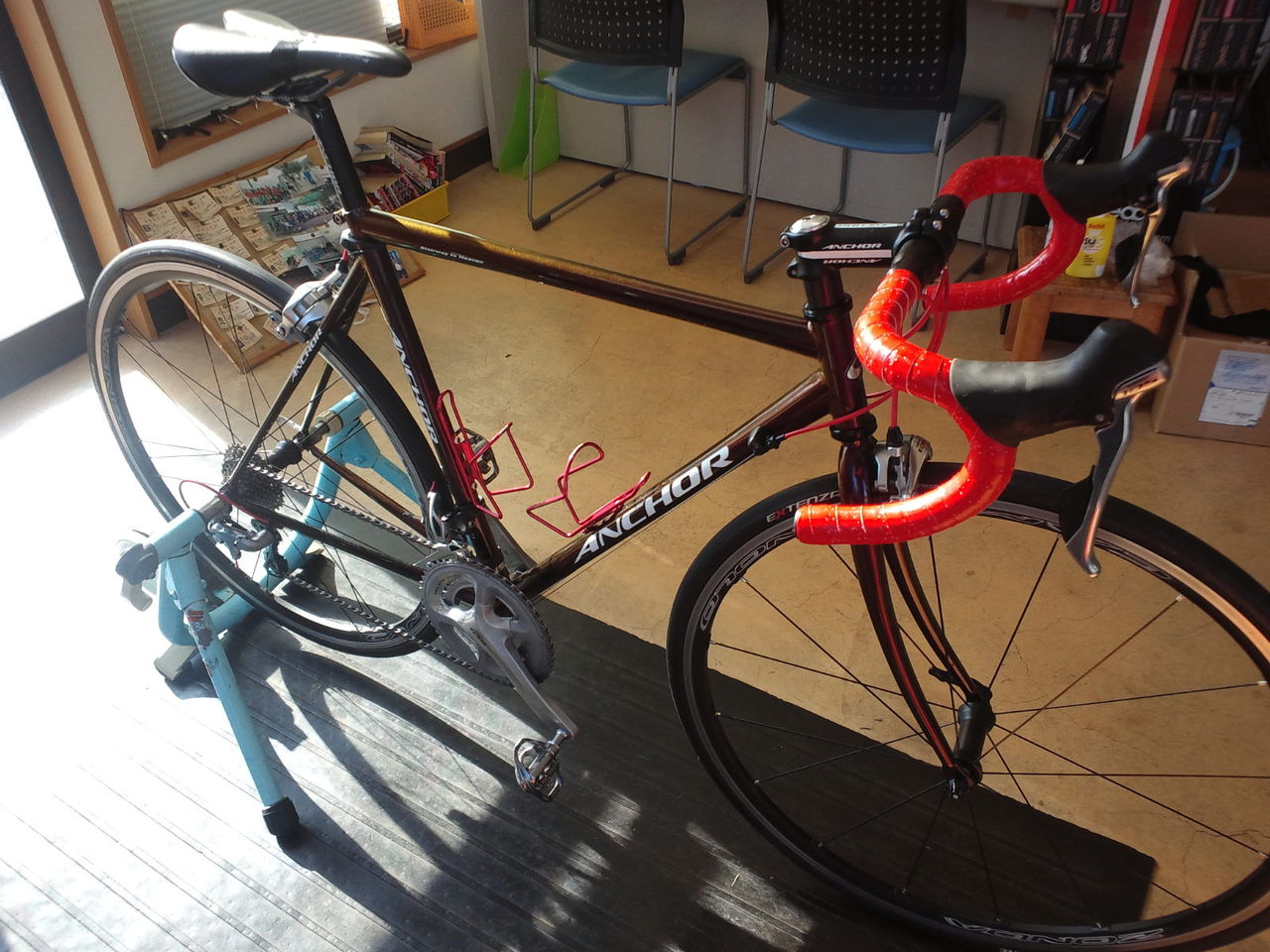 ワイヤー類を赤色、バーテープもグロッシーの赤色で大幅なイメージチェンジとなりました。