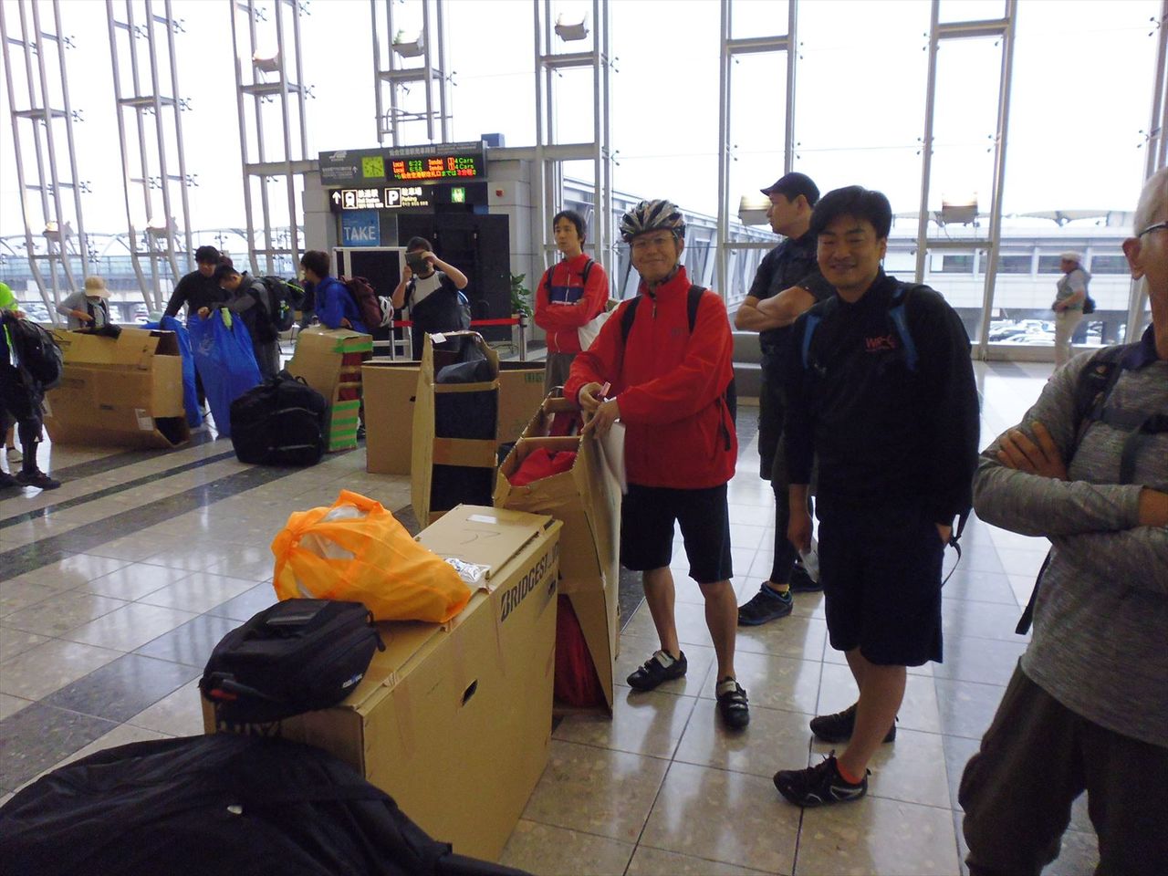 一通り全員分のリアディレイラーを元通りに直し、組みあがると若干フレームに傷ついてしまった人もいるが破損せずに飛行機輪行完了!ひゃっほ~い。