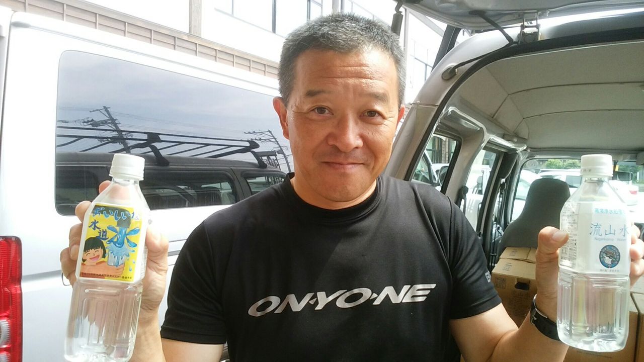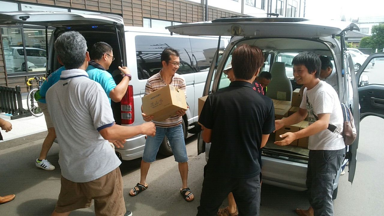 観光協会の宮田様がわざわざ水を720本(30箱)を持って駆けつけて頂きました。