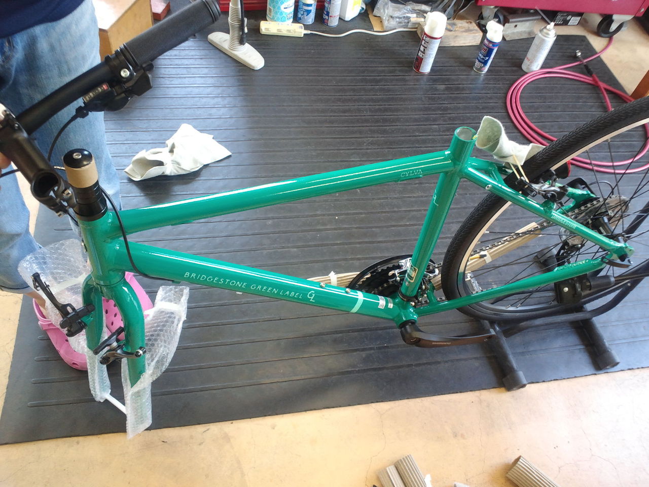 グリーンラベル シルヴァF24 スポーツバイク納車 2018.09.08 鈴木様 購入のブリヂストン グリーンラベル シルヴァF24 初めてのスポーツバイクということでブリヂストン グリーンラベルからクロスバイクを選択いただきました。 イベント資料作りしたから組上げが楽しくてしょうがない。なんか楽しすぎて、スポークテンションいじっちゃえ! 今回も素晴らしく出来に組上げ完了しました 11月の走りまでにロングライドに耐えられる体を作っておいて下さい!凍える冬にロングライドして、温泉を楽しみましょう^^