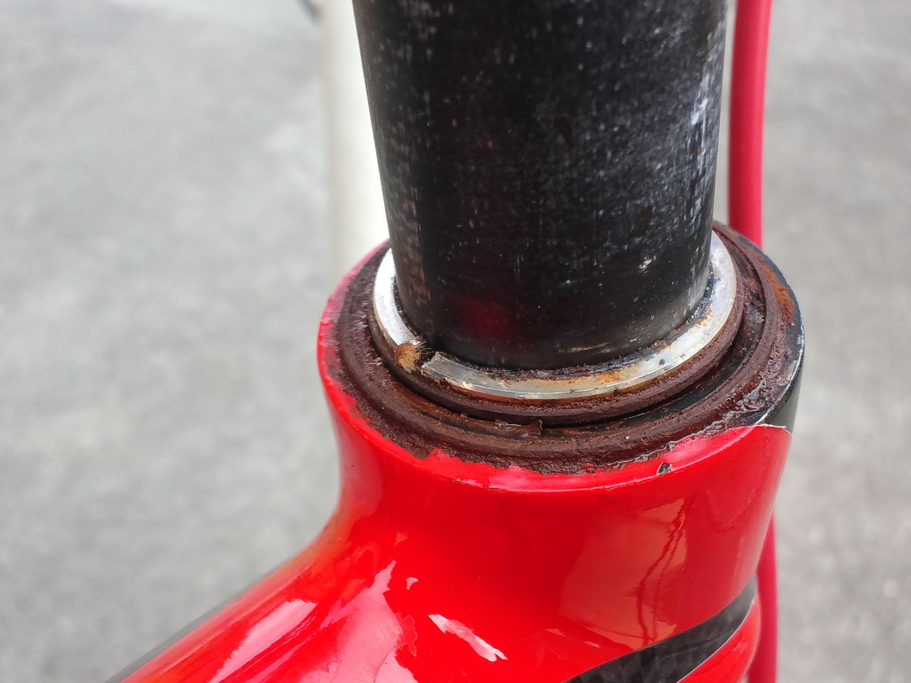 自転車も定期メンテナンスしてますか。 お知らせ 2018.10.18 6年前に購入いただいたお客さんのタイヤ交換を依頼いただきました。が、「あれっ!?」ハンドルが重い、左右に動かすと異様に渋い。ステムを外してみると大量の錆が落ちてくる。ヘッドパーツは汗が直撃しやすい場所なので、約6年分の汗と涙の結晶が溜まっておりました。 ベアリングを交換しようとするも固着していて外せない。 急遽、手作りの工具を作成し、ラスペネを吹きかけ半日放置。ここから数時間かかっての取り外し作業となりました。 ロードバイクは細やかなメンテナンスが重要です。1年に一度、乗らなくなる冬の時期にでもメンテナンスされてはいかがですか