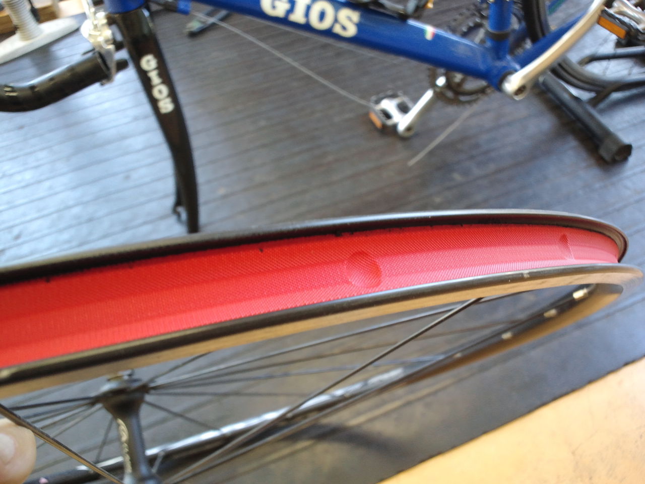 これ、このままだとスローパンクの原因になりえるのでシマノのハイプレッシャータイプのリムテープへ交換。
