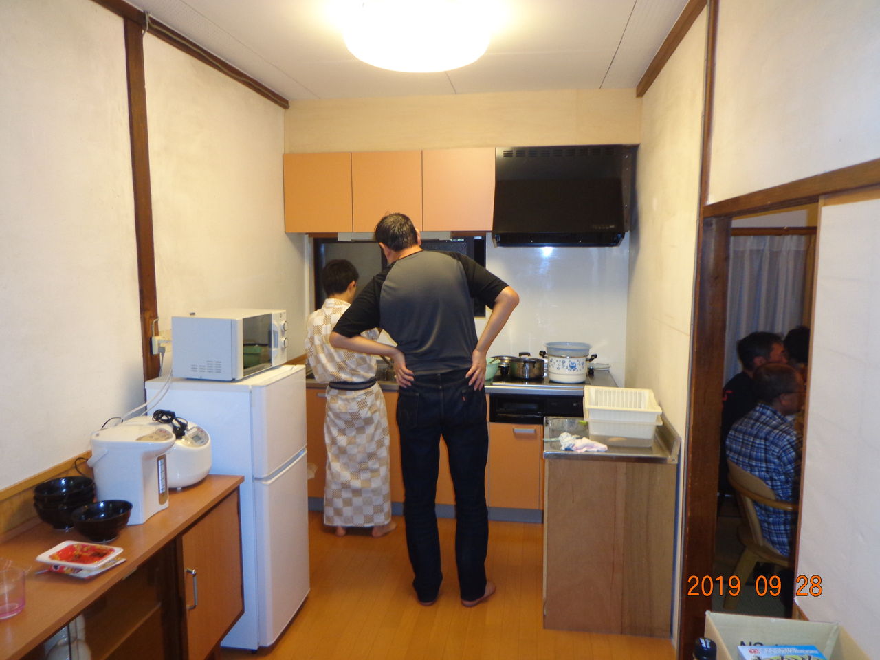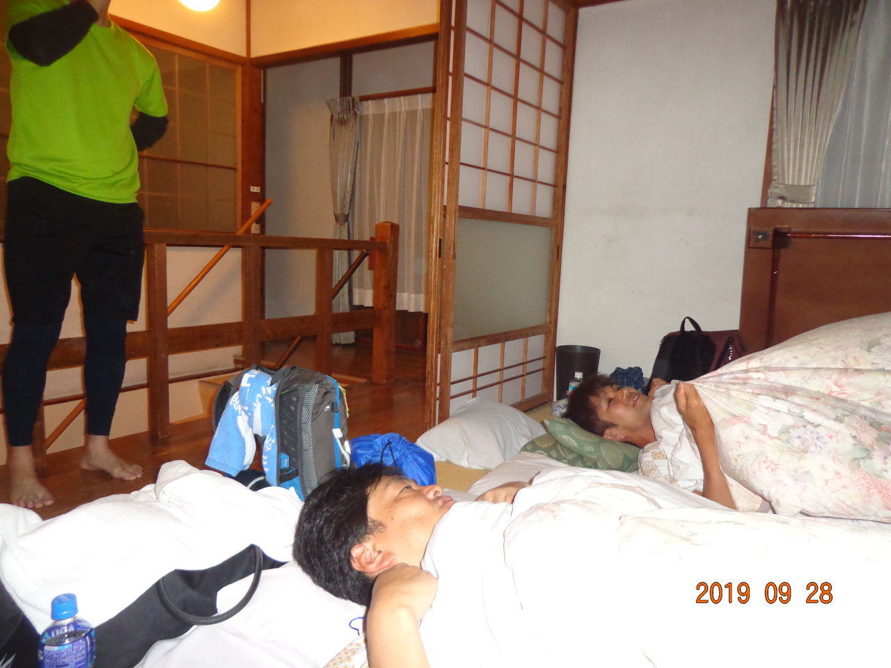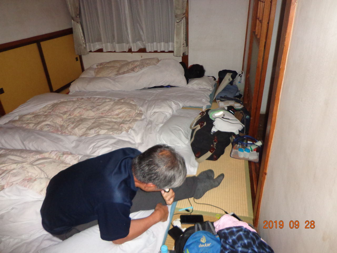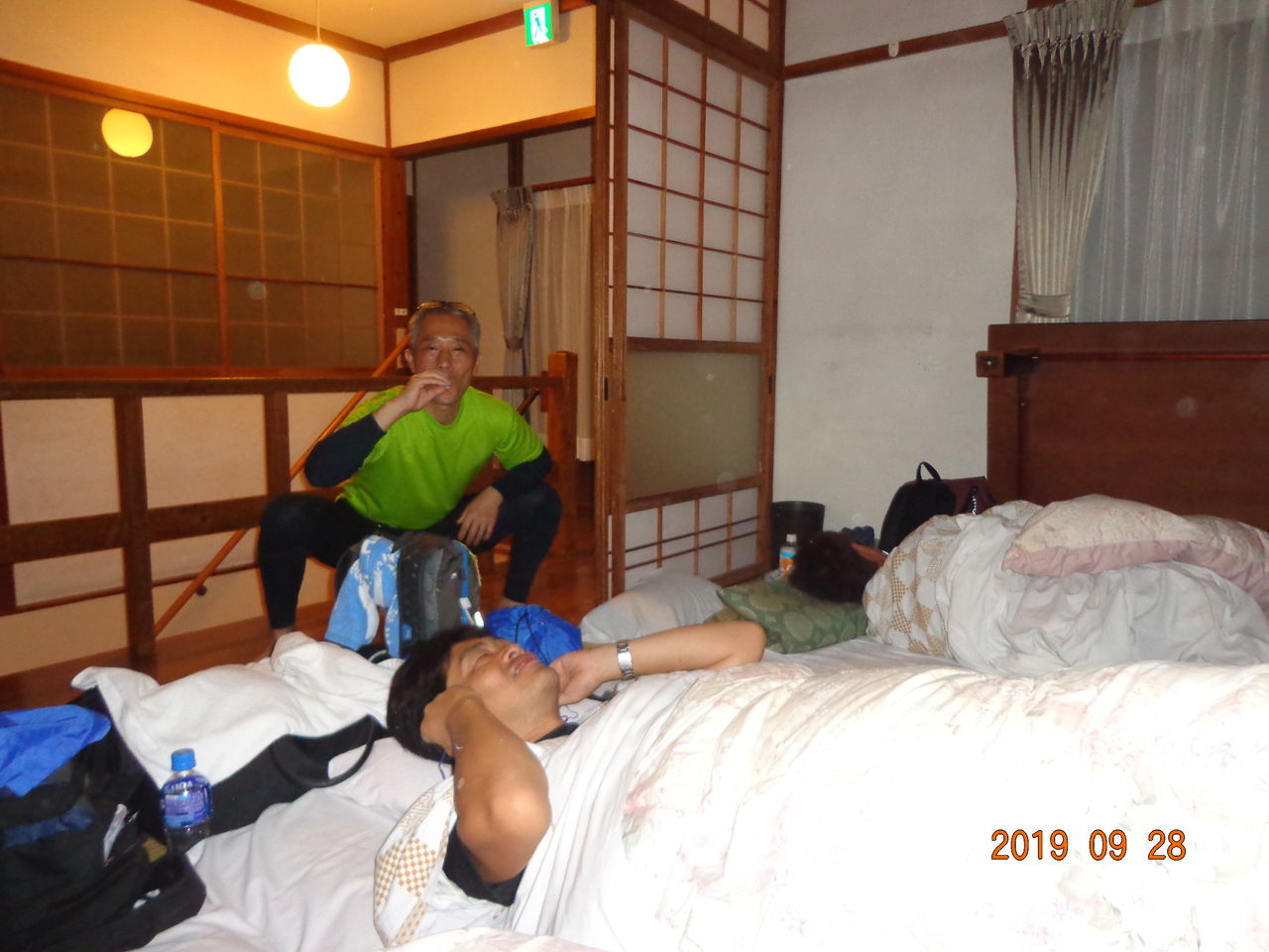 買い出しから戻ってきて、数名は風呂から上がってまったりしている。どんどん入らないと風呂がつまってしまうので数名と一緒に本館の露天風呂でまったり。
