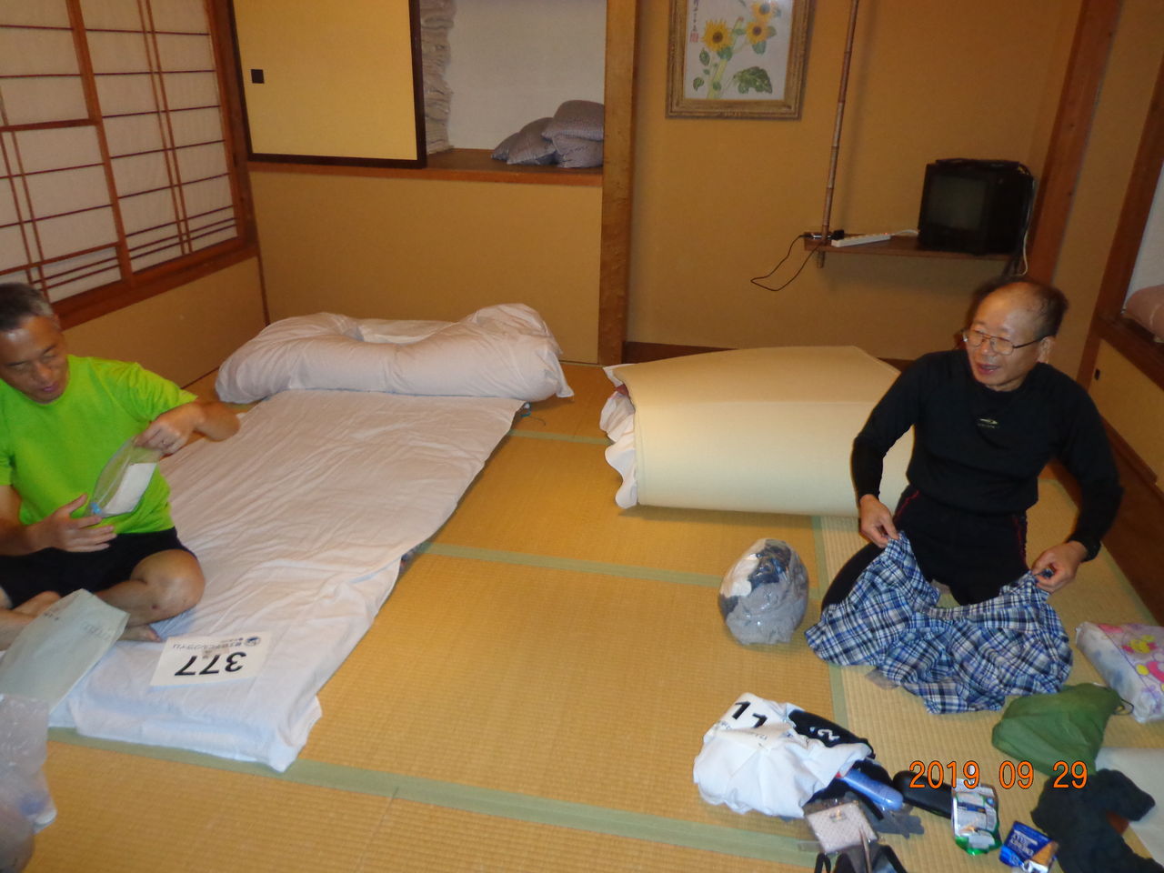 昨晩のスーパーで予め人数分のオニギリを購入していたが、微妙に硬くなっておりモサモサの状態であるが、ワカメスープと共に胃袋に流し込む。