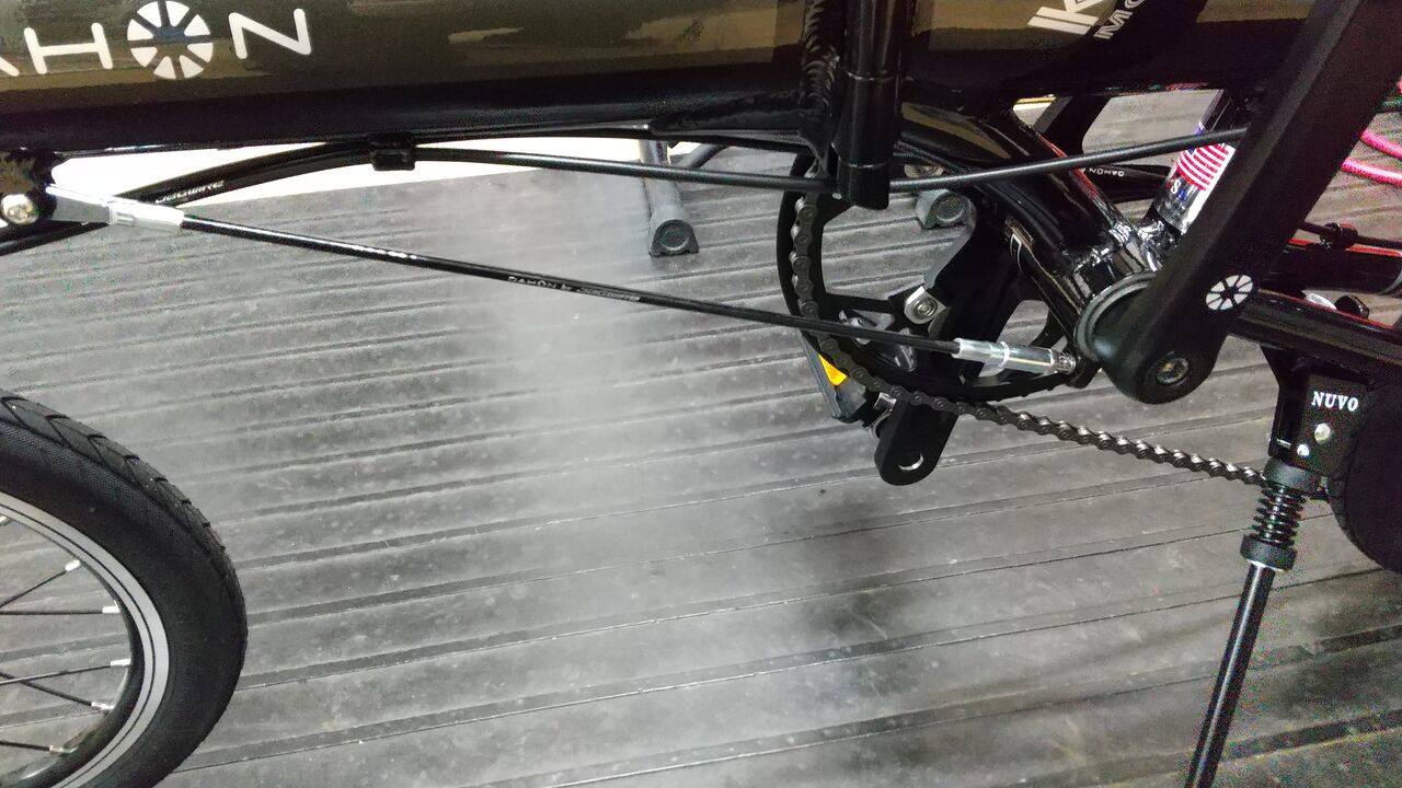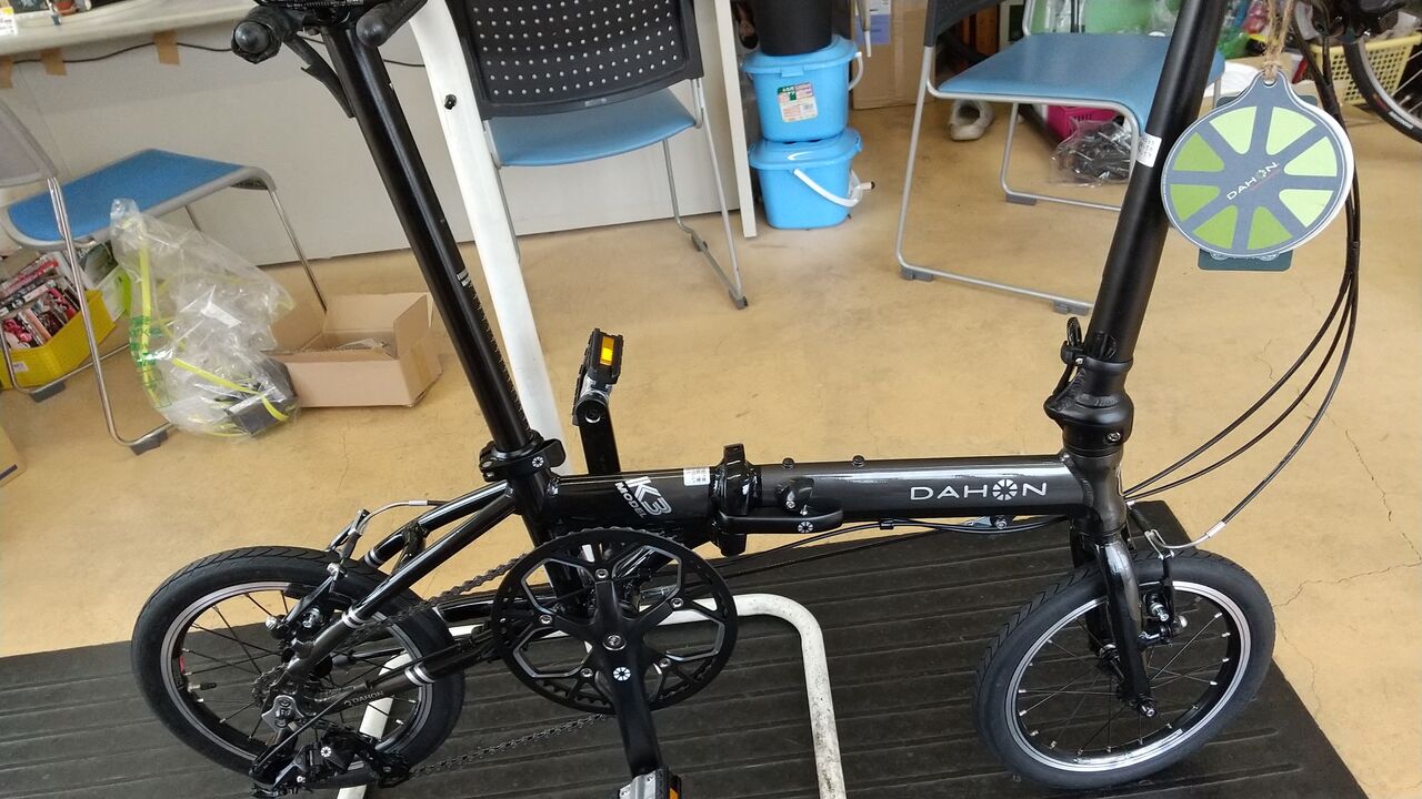 DAHON K3 ガンメタブラック スポーツバイク納車 2020.01.14 菊地様 購入のDAHON K3 14インチでかなり小さく折り畳めて、7kg台という軽量モデル。しかも外装3段変速というのだからアップダウンもこなせるじゃ~ないか! DAHONオリジナルという外装3段 剛性を高める為にダウンチューブ下にワイヤーを張るという凄い考え方。 K3専用スタンドも取り付けて完成となりました。14インチなので大変かもしれませんが週末サイクリングも是非!