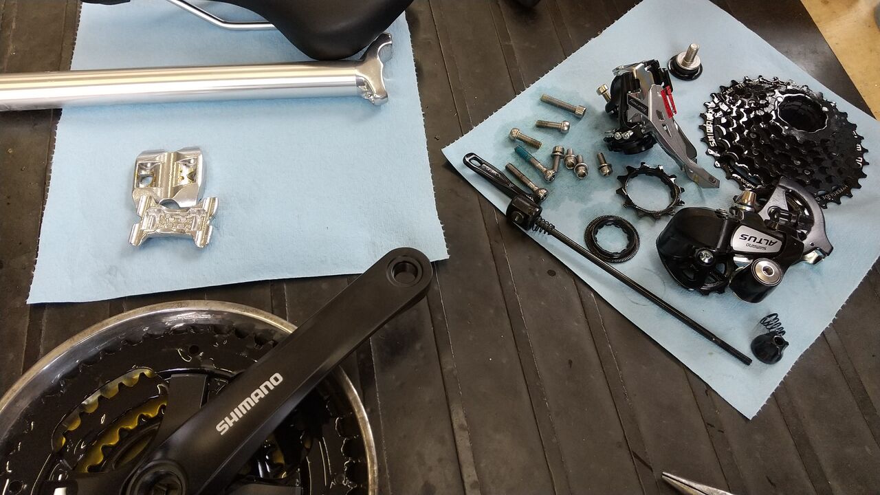 嫁専用ルイガノ セッター9.0完成 組上げ作業工程 2020.06.15 もう数年もすると娘達が巣立っていく。子供達が巣立ち後は自分達に時間が溢れ出す。老いは足腰からというので、40代の今のうちから少しづつ、少しづつ鍛えて健康的な老後を目指す計画。自転車屋の嫁であるがロードバイクに乗るのはちょっと怖いというので、ステップを踏んでクロスバイクから慣れていこう。ゆくゆくはEロードバイクだ! ガラスの鎧、カガミの甲冑、ガラスの盾を施工。 チェーン、ギア回りはイノテック105施工 近くを試走してきてもらい「よ~しっ、合格」をいただきました