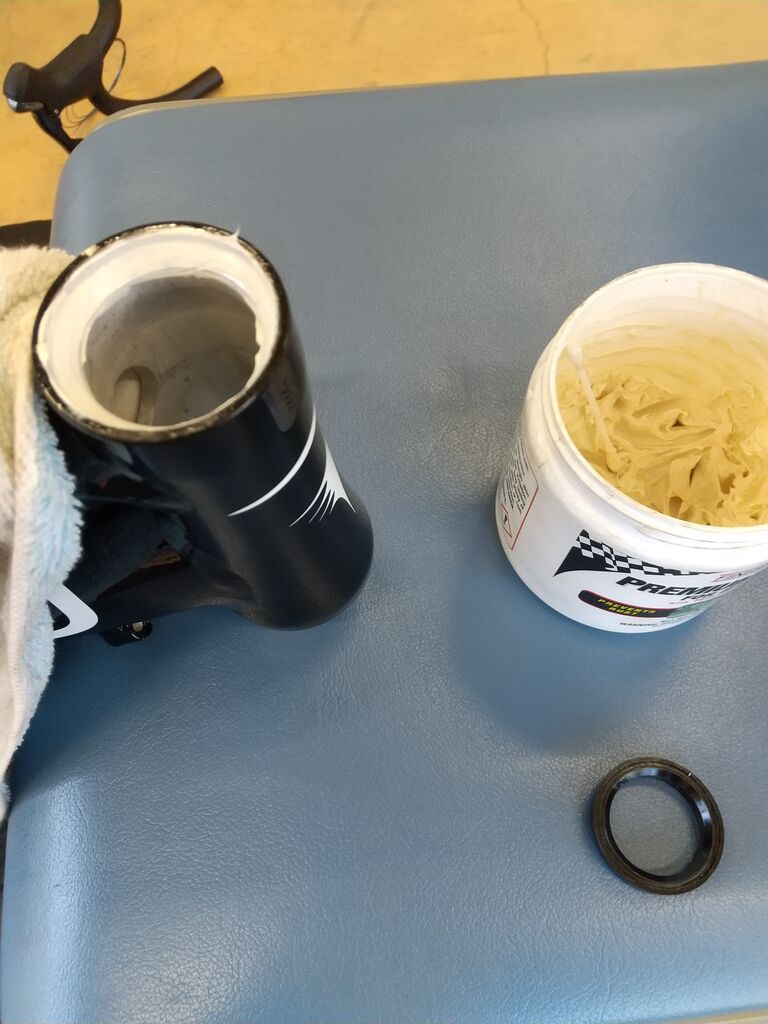 汗が滴るあたりのヘッドパーツ内部はグリースを多めとしてセッティング。