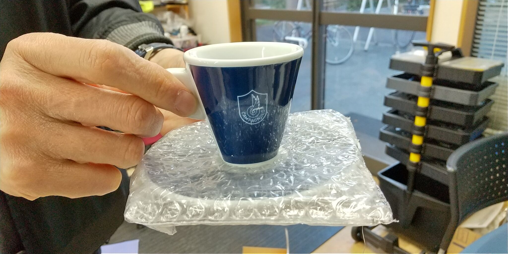 S様にもテストホイールを試してWTOホイール注文いただいてましたのでカンパニョーロのイタリアンなカップが届きました。