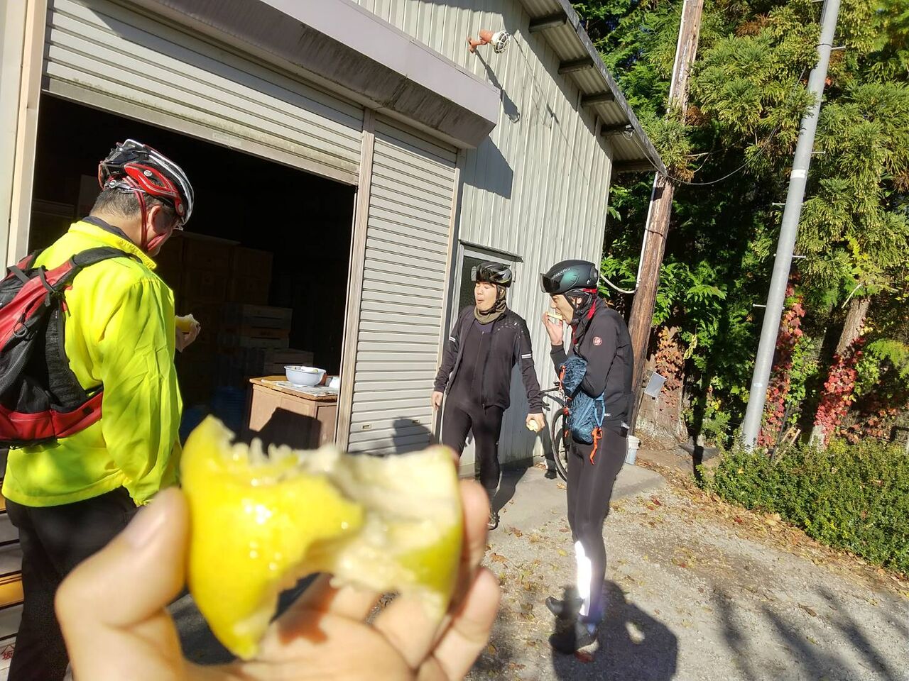 初のバンビリンゴ園というカトピリさんと熊川さん、但野さんと一緒に出発だ~。