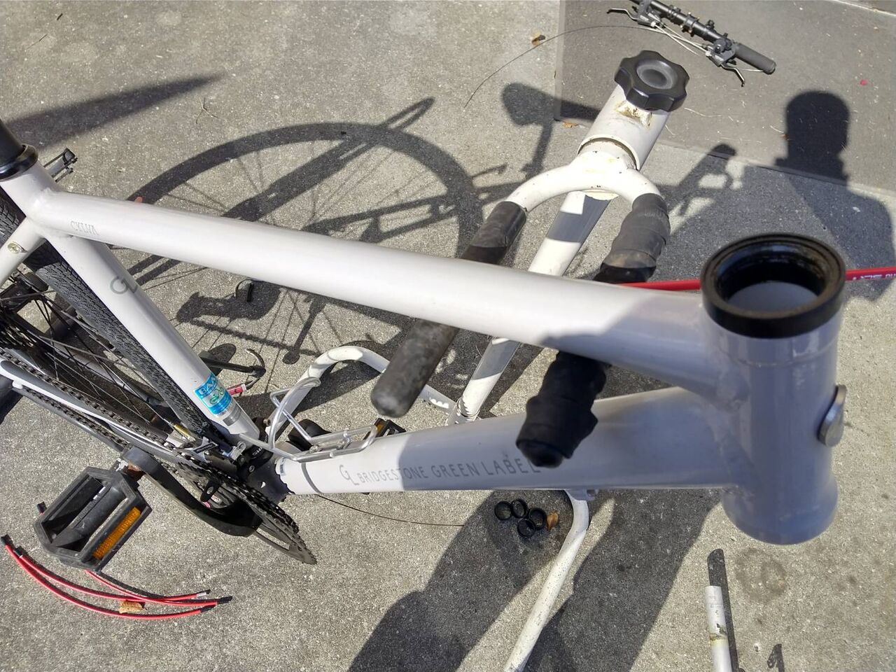 メンテナンスパッケージ弐 シルヴァF24 組上げ作業工程 2023.03.01 M様のシルヴァF24のメンテナンス依頼をいただきました。 改めて見てもシマノのVブレーキや、RDなど良いパーツ群と洗練されたデザインでシルヴァF24は傑作品であると思える ヘッドパーツの掃除から。FDの汚れも酷かったので簡易掃除を。RDハンガーの歪みチェック。 シフト、ブレーキアウターを赤色に変更。タイヤを32cから28cのグラベルキングSK+へ変更し軽やかでありながら林道でも恐れることなく突入できます あと1か月後に週末サイクリングも始まりますので奮って御参加ください^^コロナの3年分遊びましょう!!