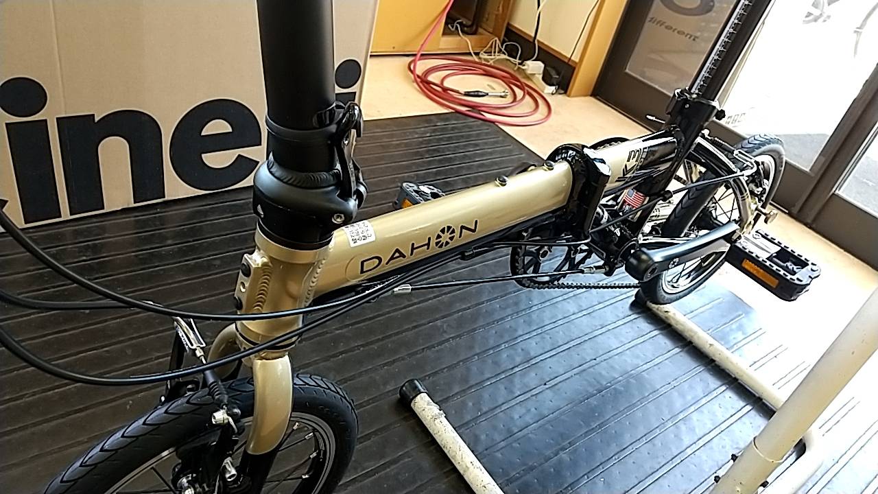 DAHON K3 シャンパン スポーツバイク納車 2023.04.14 S様 購入のDAHON K3が納車となりました。 輪行など持ち運びも多用するとのことでしたので軽さ重視の一台。と言いつつも意外に走るのがK3 14インチなので慣れるまではハンドルの挙動がクイックな感じがしますが、慣れてしまえばこっちのもの!こんなに便利な乗り物は無いくらい良い逸品です これを持って観光地へ行けば、行動範囲が倍以上に広がって楽しく探索ですね!折りたたみ方を忘れたとかカスタムしたいとか何かありましたら、いつでも御相談ください