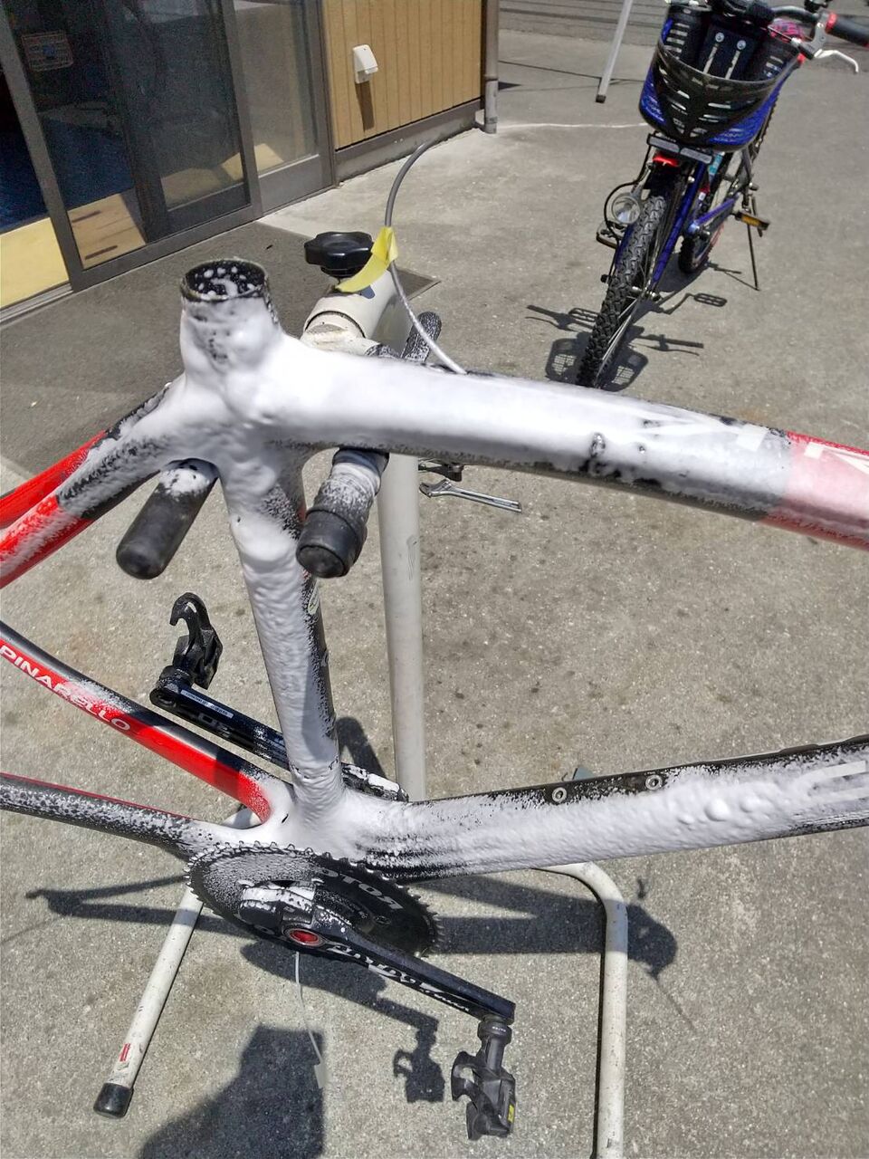 RAZHA K メンテナンス参 組上げ作業工程 2023.06.11 Ku様からメンテナンス参の依頼をいただきました。 まずは少しづつ分解。 フレーム単体にしたらクリーニング フロントディレイラーのスキッドプレートが割れてる。 ブレーキシューも年季が入ってる状態なので交換。命を預ける場所なのでケチっちゃ駄目な場所。 コラムは1.5cmカット メンテナンス参は兎に角掃除掃除。オイルと洗剤で指の皮膚が痛くなってくる。 丁寧に丁寧に仕上げるから可愛がってもらうんだよ~と話しかけながら(ブツブツ言いながら)作業したら完成 これでまた気持ちよく走れるバイクとなりました!