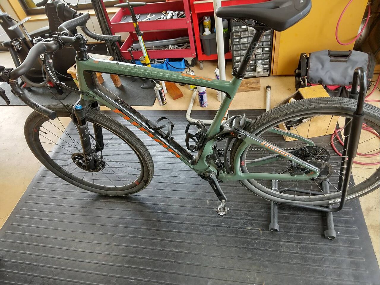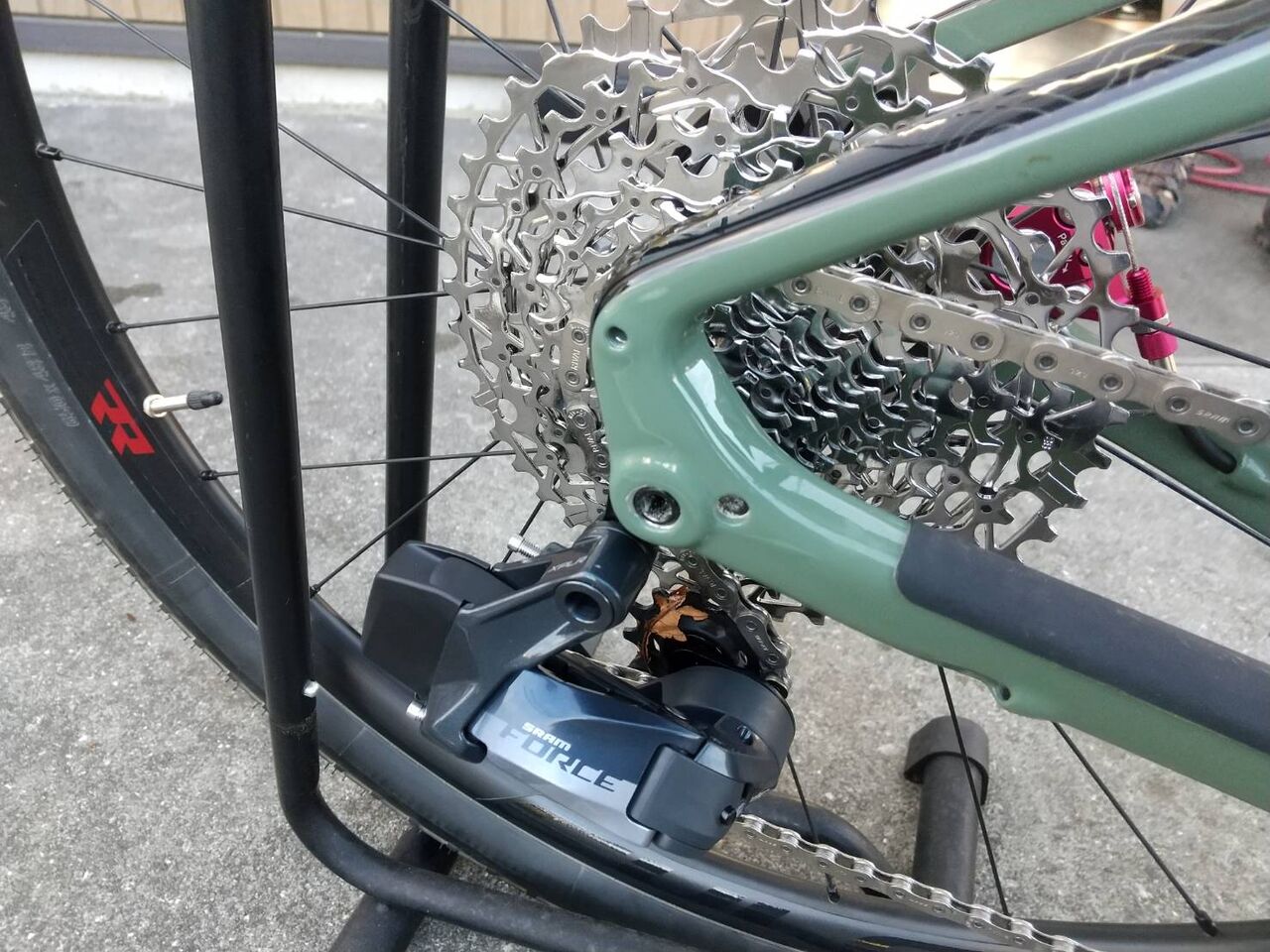 SRAM ETAP FORCE換装完了 組上げ作業工程 2023.06.16 E様のNINER MCR9をSRAM ETAPへ交換依頼をいただきました。 グロータックのメカニカルディスクブレーキを使いたいということでFORCEに決定。 一旦バラバラにして、簡易クリーニングしたら組立開始。フルクラムのRAPID RED5 650DBシマノタイプなので、フリーボディーをXDRへ交換。 シートポストはROCKSHOXのドロッパーポスト これがグラベルロードの完成形としての一つの形だと思います!リアサスも搭載してるし、ドロッパーポストで荒地やダウンヒルだってゴリゴリいけちゃいますね。林道や悪路も楽しんで走破してください